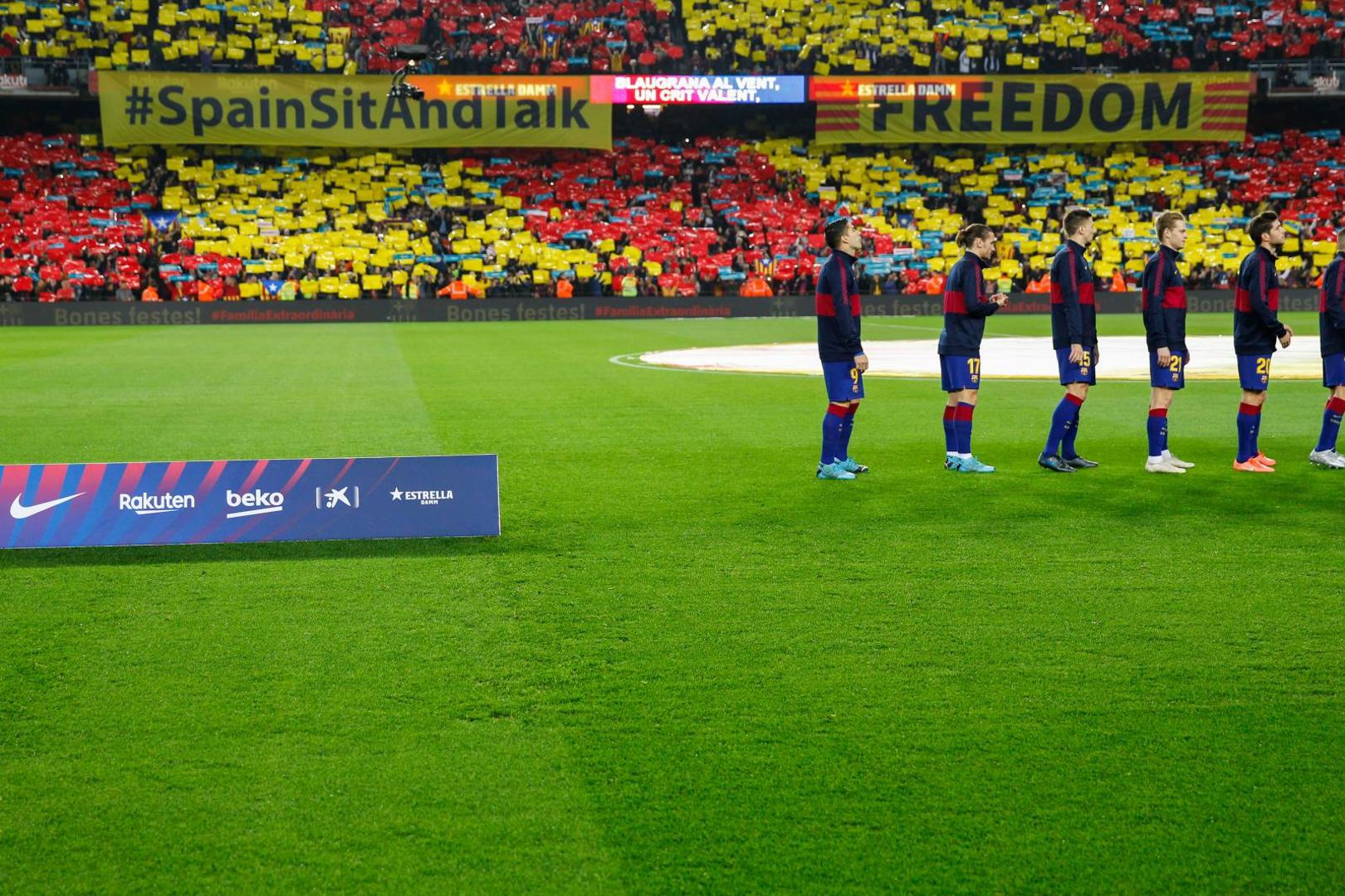 Tisuće osoba nosile su natpise „Španjolska, sjedni i razgovaraj“ a u ulicama oko stadiona prosvjednici su zapalili kontejnere za smeće praveći barikade. Bacali su boce i limenke na policiju. Policija je koristila palice i sredstva za rastjerivanje mase. Privedeno je desetak osoba. Prosvjednici su namjeravali iskoristiti utakmicu poznatu pod nazivom El Clásico, jednu od najgledanijih na svijetu, kako bi odaslali poruku o „nepravednim presudama“. Unutar stadiona izvjesili su veliki transparent „Sloboda“ te skandirali „nezavisnost“.