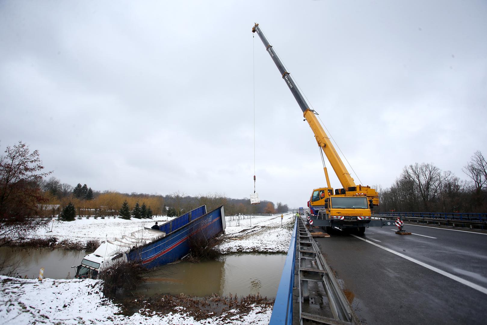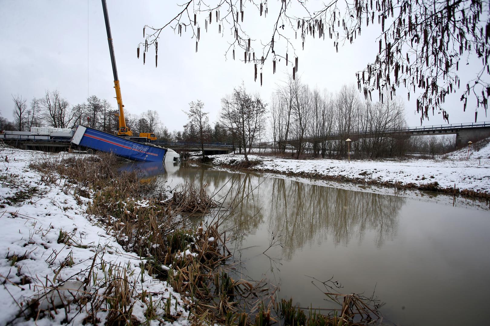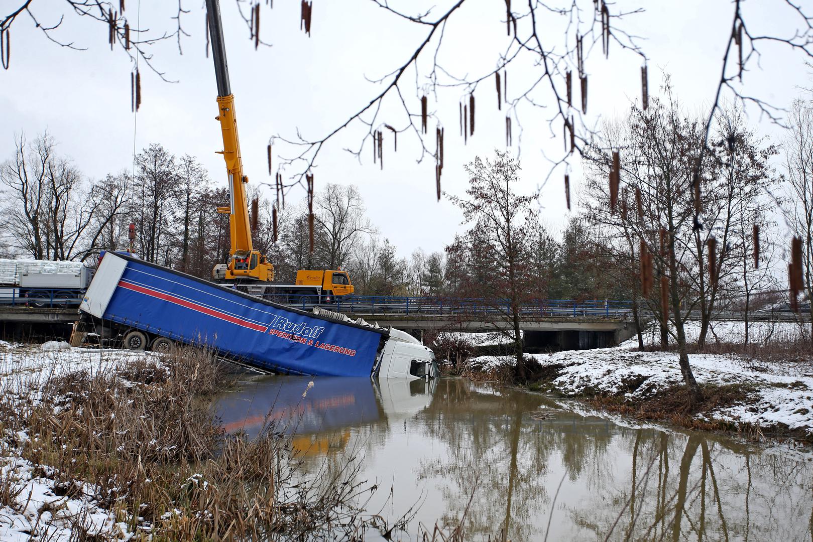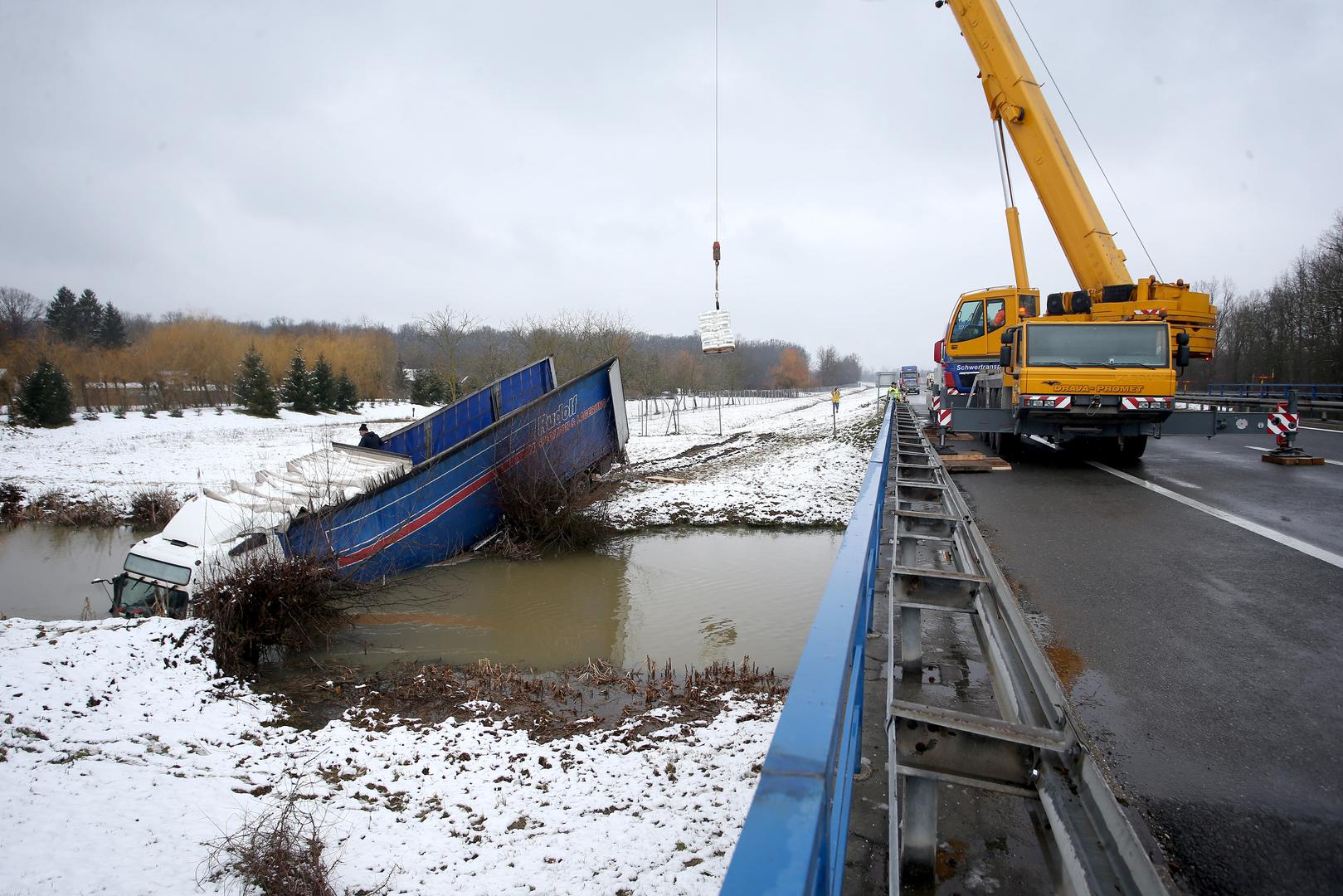 Kamion bugarskih registracija sletio je u rijeku Pakru na autocesti A3.