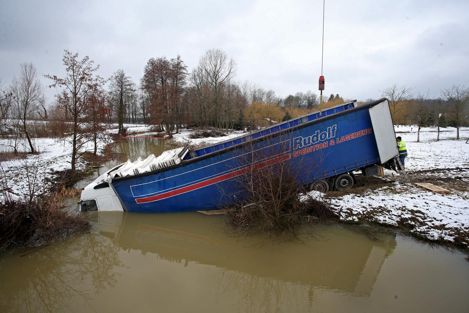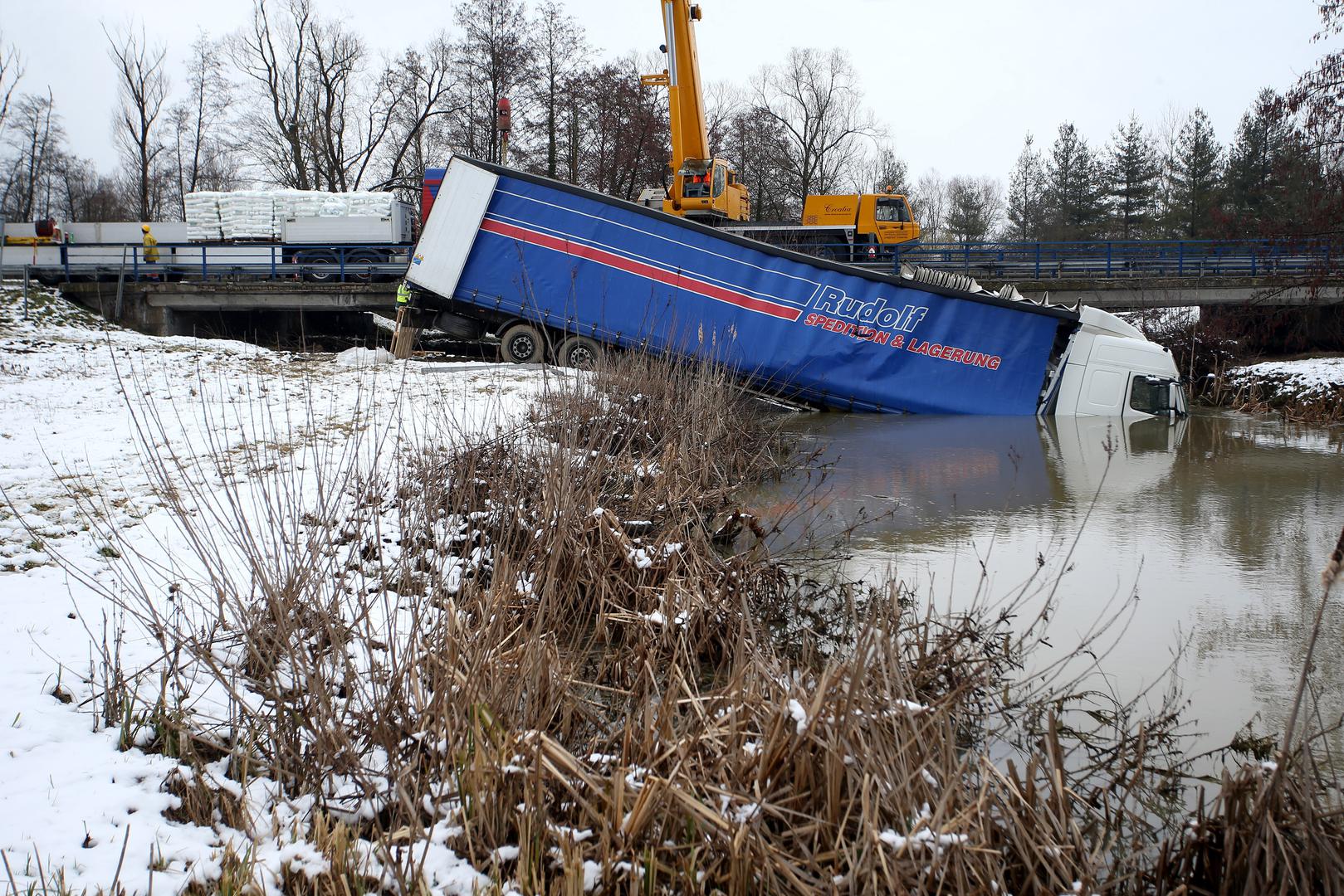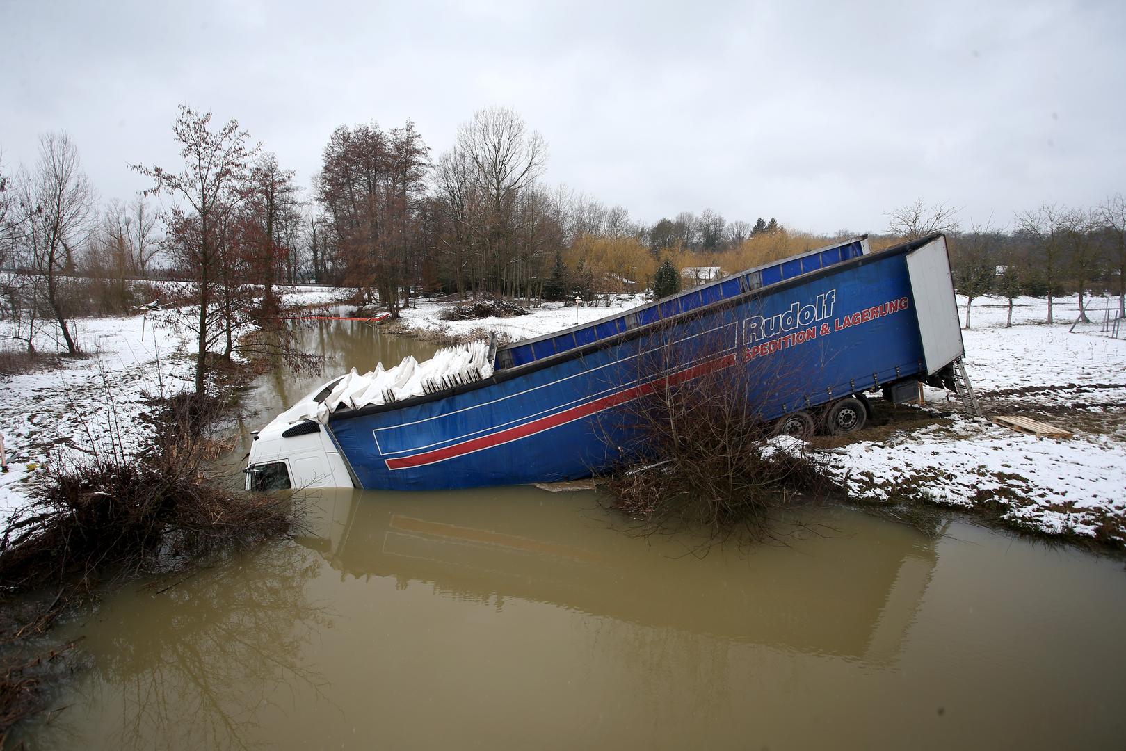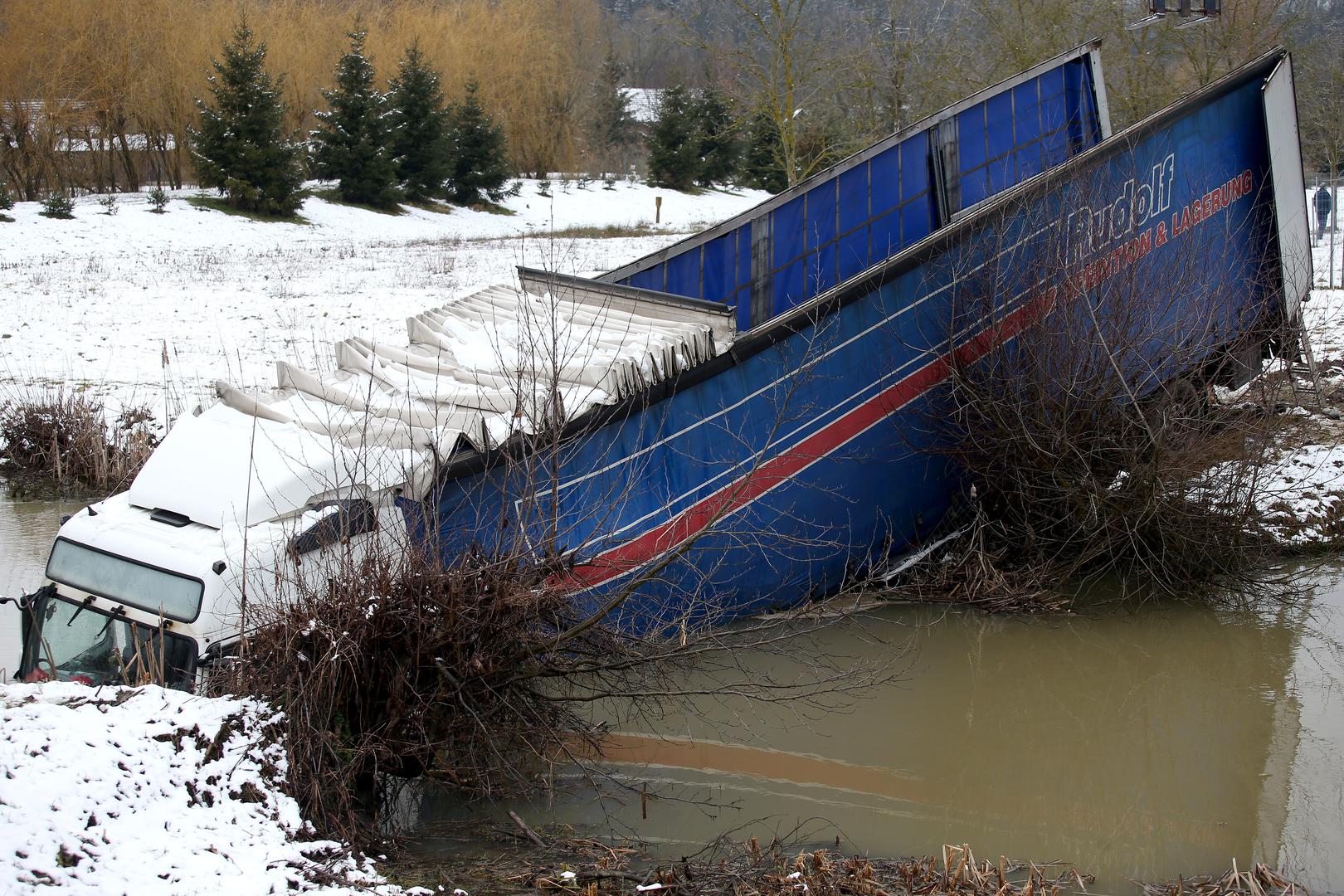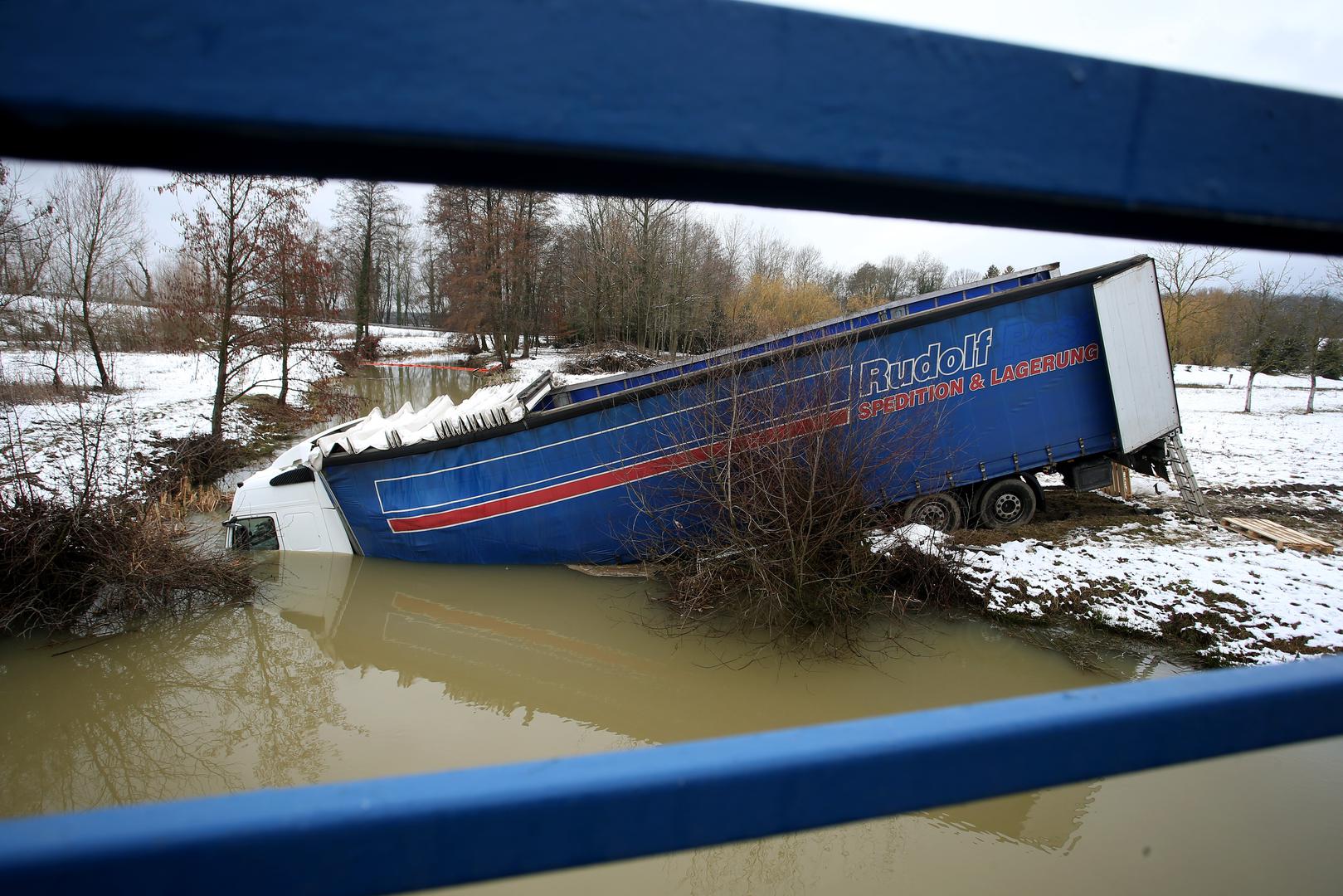 Kamion bugarskih registracija sletio je u rijeku Pakru na autocesti A3.