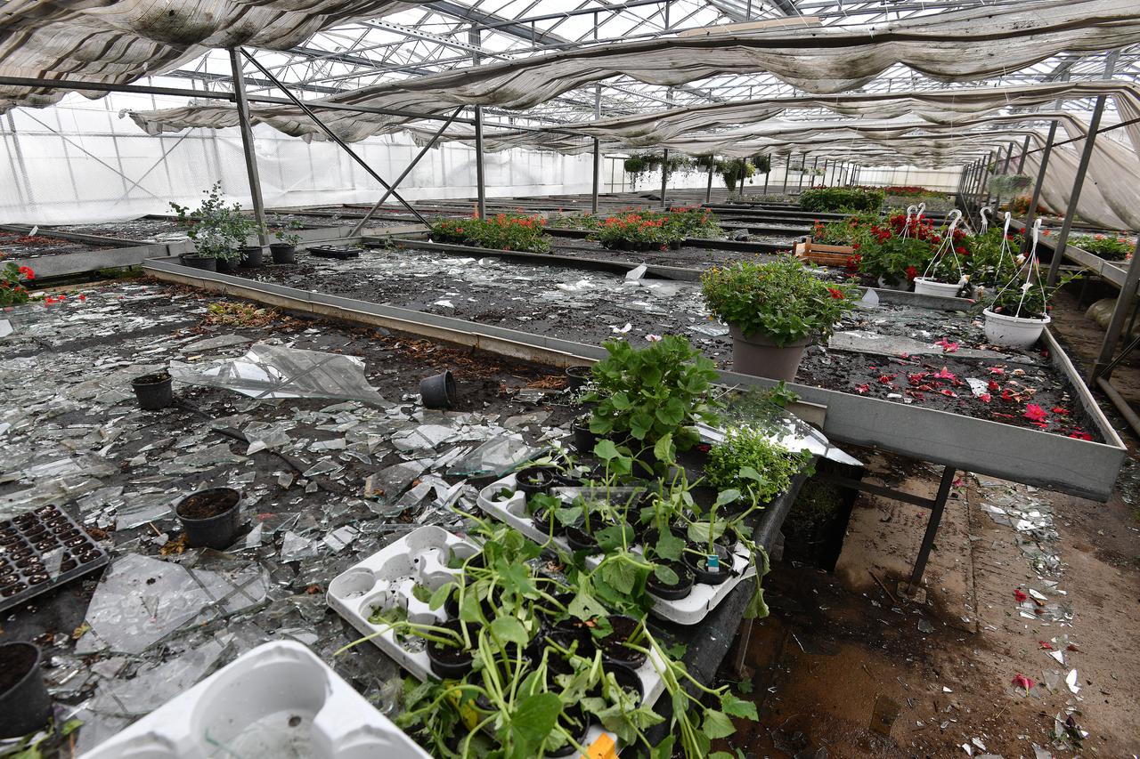 9:50 – Tuklo je dobrih 15 minuta, veličine teniske loptice, kao da su bombe padale. Plastenici su svi izbušeni, na staklenicima je šteta stopostotna. To nam je jedina djelatnost, ne znamo kako dalje – rekao je Željko Mesarić.