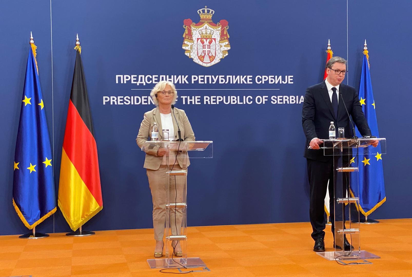 Diplomatskom ofenzivom njemačka vlada već nekoliko tjedana nastoji spriječiti širenje utjecaja ruskog napadačkog rata na Balkan, piše Kölnische Rundschau. U tekstu pod naslovom „Užurbana diplomacija“ list prenosi da je njemačka ministrica obrane Christine Lambrecht, nakon susreta s predsjednikom Srbije Aleksandrom Vučićem, pozvala Beograd na promjenu kursa kada je riječ o sporu s Kosovom, kao i na odlučniju suradnju s EU-om: „U razgovoru je bilo jasno da su mir, sloboda i teritorijalni integritet zajedničke vrijednosti“, piše njemački list. „Ona (Lambrecht) je pozdravila to što je Srbija jasno osudila ruski napadački rat u Ukrajini.“
