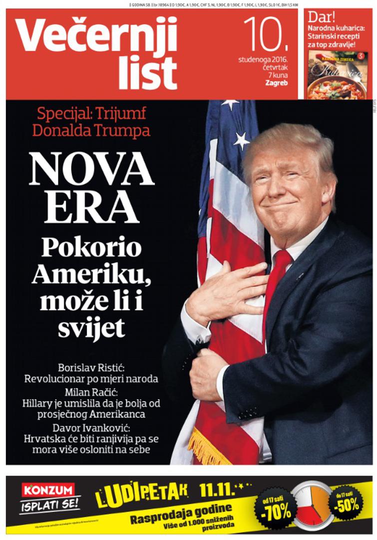 Bravo Amerika, bravo Amerikanci. Niste se dali navući lažljivim anketama i lažljivim medijima. Bravo !! Kakav god da je, drago mi je samo zbog toga što su oni koje prezirem svim silama radili protiv njega. Nije im uspjelo jednostavno zatoo što su pretjerali u podmetanju. Dosta je jarma političke korektnosti koji je zamijenio partijske dogme iz prošlosti. Čuo je što narod govori i osjetio što narod ima u srcu.. Dolaze crni dani za Sorosevu kamarilu.