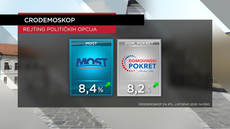 Vrlo blizu trećoj poziciji su Most s 8,4 posto i Domovinski pokret s 8,2 posto.