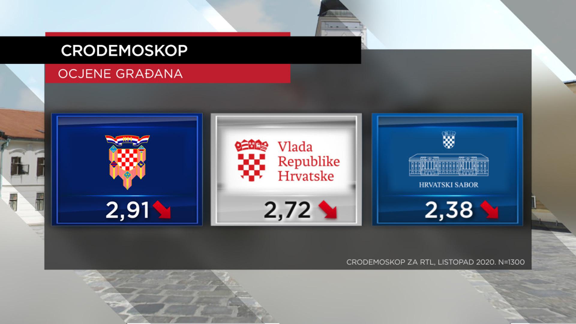 Svi su lošije ocijenjeni, ali prosječnu su ocjenu zadržali; ocjenu dobar dobivaju i Pantovčak (2,91) i Banski dvori (2,72), a Hrvatski sabor dovoljan (prosječna ocjena 2,38).