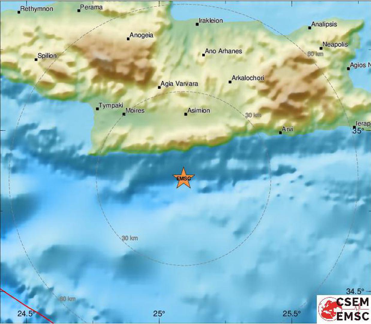 Epicentar je bio na dubini od 68 kilometara i 53 kilometara udaljen od najvećeg grada na otoku - Herakliona.