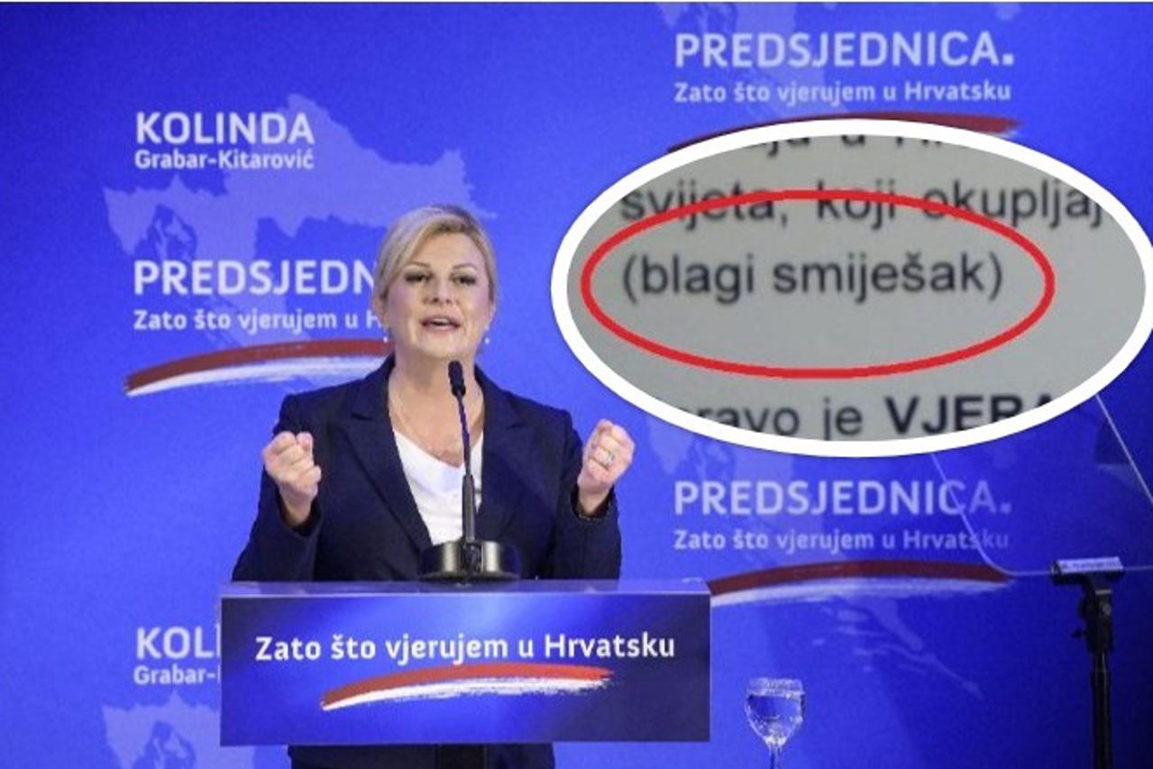 Šef izbornog stožera Kolinde Grabar-Kitarović Ivan Anušić izjavio je u srijedu kako su novinari na predstavljanju kandidature dobili radnu verziju predsjedničina govora sa didaskalijama, te da je riječ o nebitnoj greški koja ne može zasjeniti odlično predstavljanje kandidature.