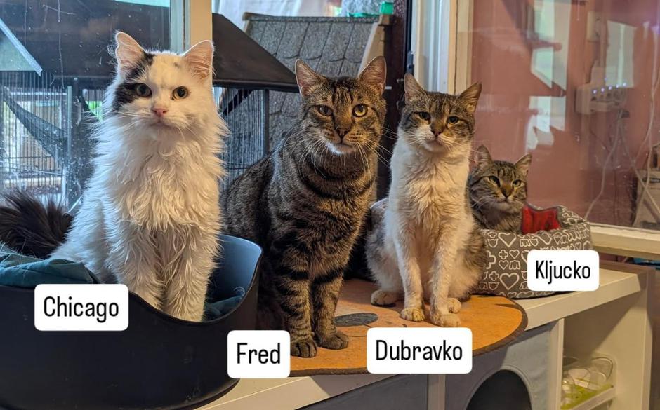 Za Chicaga im je stigla dojava o bolesnom i tužnom miceku koji se nikako ne snalazi na cesti. U četiri godine, koliko je kod njih, u veterinarskom kartonu upisani su mu FeLV i FIP (mačja leukemiju te mačji zarazni peritonitis). Za spavanje uvijek pronalazi posebna mjesta, a obožava se šišati i brijati. Fred ima vestibularni sindrom, poremećen mu je centar za ravnotežu, i sve to posljedica je vađenja polipa iz uha. Bio je i udomljen, ali su ga udomitelji izbacili. Nakon toga udomljen je još jednom, ali se vratio u Pravu šapu zbog nezgode – s police je srušio figurice. Dubravko je senior koji je preživio i oporavio se od FIP-a. Imao je nekad i svoje ljude, no kad se razbolio, donijeli su ga na liječenje i nikad se više nisu javili. Dubravko još čeka, a s njim i volonteri koji su morali pokriti sve troškove prilično skupog liječenja. Kljucko se već drugi put liječi od FIP-a. U Pravu šapu stigao je u sklopu projekta "Uhvati, steriliziraj, vrati", no imao je slomljenu nogu a ubrzo su otkrivene i druge teškoće – gleda u križ, tako i hoda, a izgleda i da je gluhonijem. Nazvali su ga Kljucko jer hranu kljuca, kao kokoška.