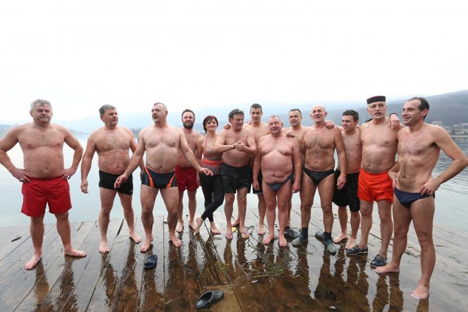 Bodrili su ih brojni sugrađani kojima je vani na oko dva stupnja, bilo i hladnije i koji su nakon kupanja sudjelovali u snimanju milenijske fotografije Šime Strikomana uz jezero Sabljake.