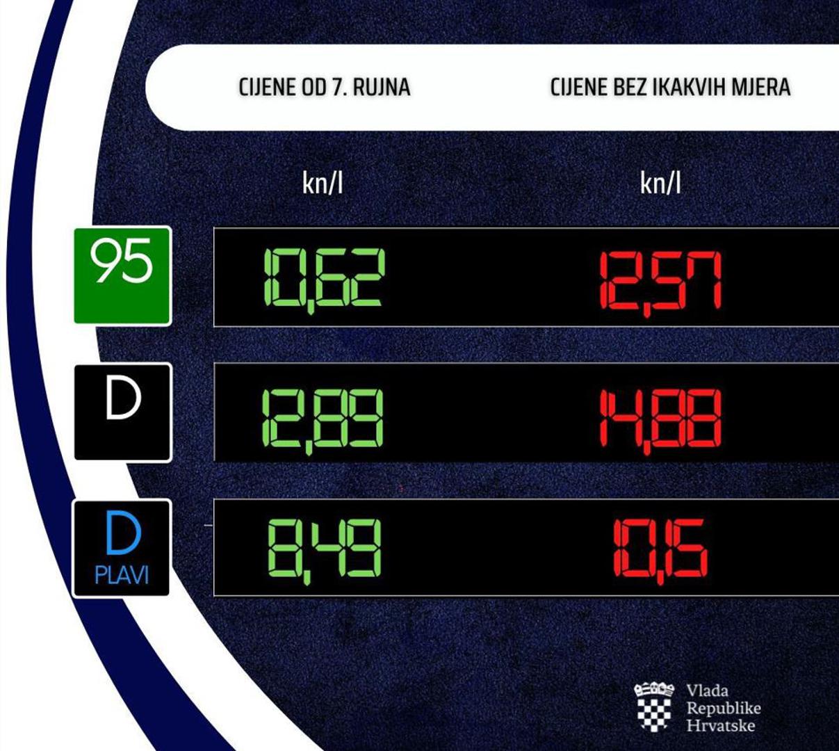 Da nema ovih mjera Vlade i da se maloprodajne cijene u potpunosti slobodno formiraju na nivou premija energetskih subjekata prije prve Uredbe, iste bi iznosile prema tjednom prosjeku: 12,57 kn po litri za benzinsko gorivo; 14,88 kn po litri za dizelsko gorivo i 10,15 kn po litri plavi dizel.
