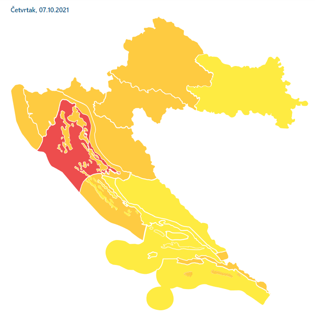 U većini predjela ipak još nije bilo značajnijih količina oborina jer glavnina oborina, kako upozorava DHMZ, tek stiže. Do kraja sutrašnjeg dana u dijelovima Dalmacije past će preko 100 litara kiše po kvadratnom metru, a najviše oborina moglo bi pasti upravo na otocima gdje je kiša danas uglavnom izostala.