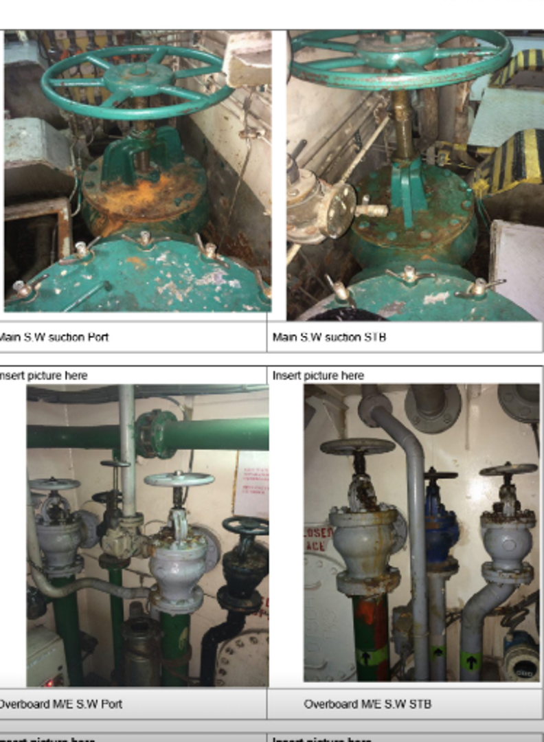 Navedeni dokument prikazuje stanje broda prije suhog doka i potrebnih popravaka, a ocjene pregledanih dijelova broda su od 1 do 4, gdje jedinica označava izvrsno stanje, dvojka dobro stanje, trojka zadovoljavajuće s potrebom remonta, a četvorka označava katastrofalno stanje koje zahtijeva izmjenu dijelova.