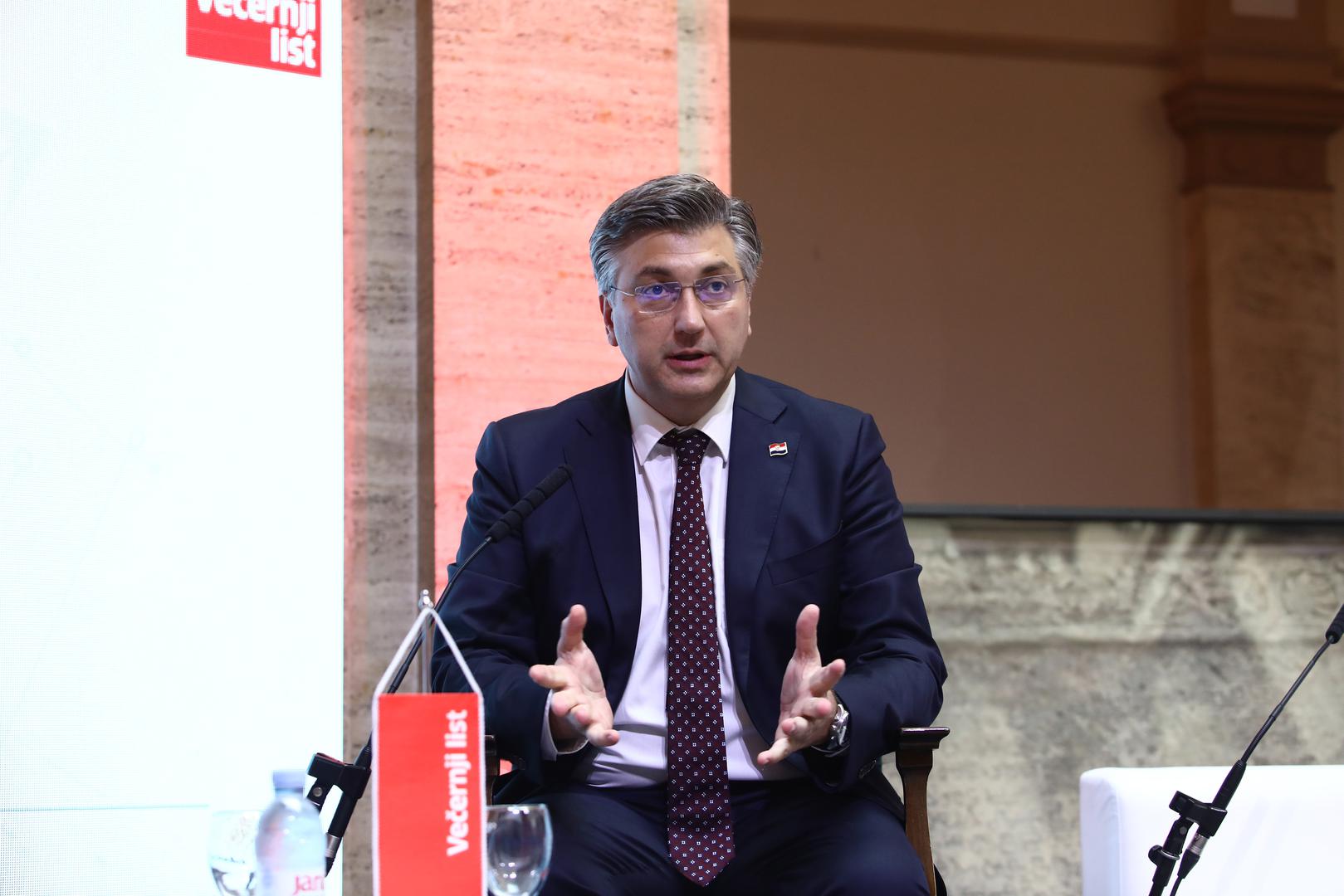 14.07.2022., Zagreb - U Hrvatskoj akademiji znanosti i umjetnosti odrzava se konferencija Vecernjeg lista "Hrvatska kao dio eurozone". glavni urednik Vecernjeg lista Drazen Klaric, predsjednik Vlade Andrej Plenkvic, Zdravko Maric, Ivan Tolj, guverner HNB-a Boris Vujcic Photo: Boris Scitar/Vecernji list/PIXSELL Photo: Boris Scitar/PIXSELL