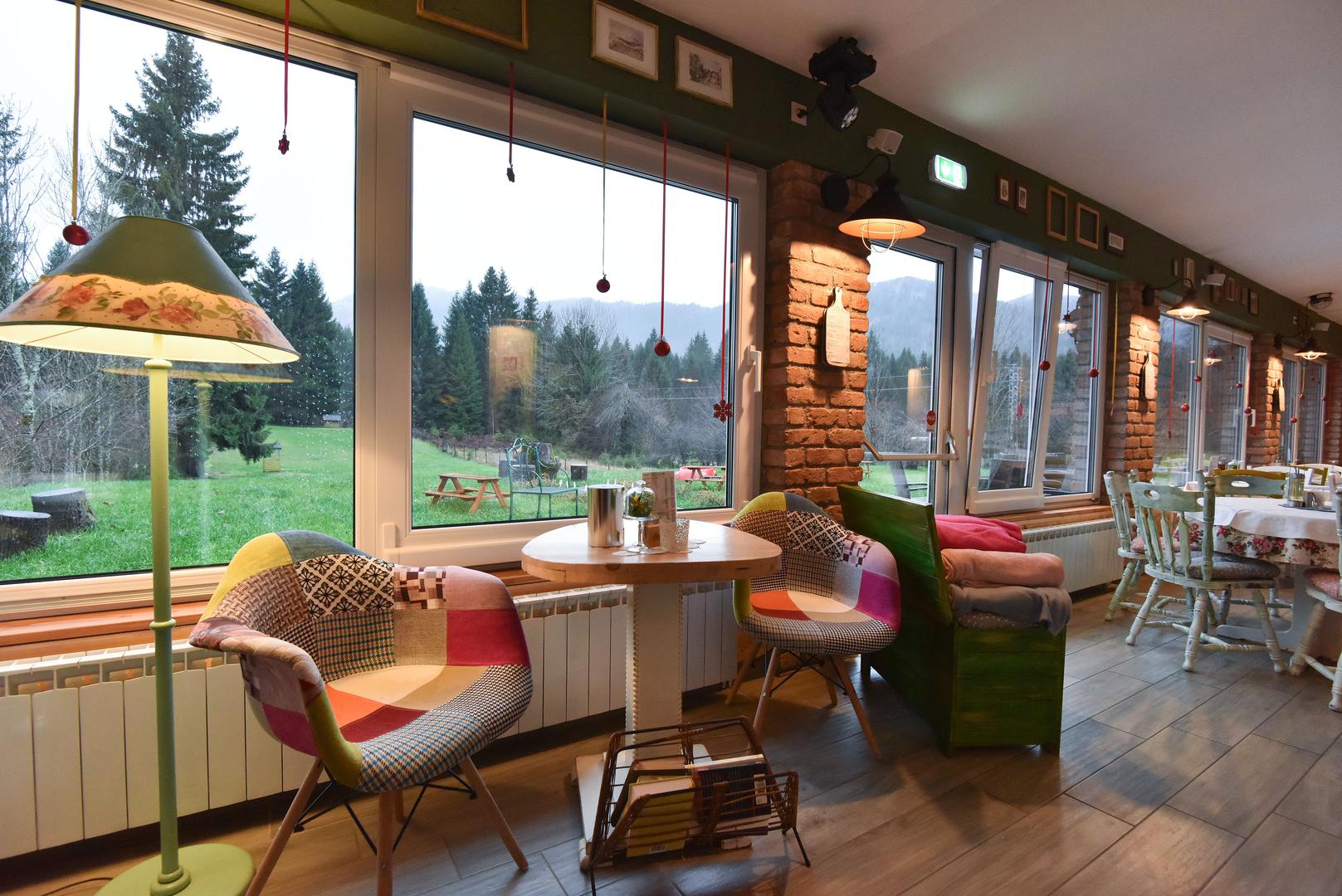 Želja nam je bila urediti mjesto koje će izgledati kao dom, kao da ste u vlastitom dnevnom boravku i mislim da smo to postigli. Imamo i šest soba, a do kraja godine planiramo riješiti svu dokumentaciju kako bismo i naše kuće za odmor integrirali u ovaj hotel i tako osigurali smještaj za 50 ljudi. Integral hotel nas je osam suvlasnika otvorilo lani u ovo vrijeme i zadovoljni smo. Nama i nije cilj zarada, već samoodrživost. Naš je restoran jedino mjesto gdje nešto možete pojesti i popiti. To je važno vikendašima koji ponekad dođu kasno u svoju kuću i ne stignu kuhati. I domaći nam ljudi dolaze na kavu, ručak, organizirano i rođendanske zabave, bude nas pun restoran, družimo se, razgovaramo. Dolaze i gosti iz Zagreba, čitave Hrvatske, ali i iz inozemstva. Nađu nas na Bookingu i svrate prespavati, ali često ostaju i dulje – kaže nam Laura. Iz restorana puca prekrasan pogleda na šumu. Imaju još ideja za budućnost; bazen, wellness...