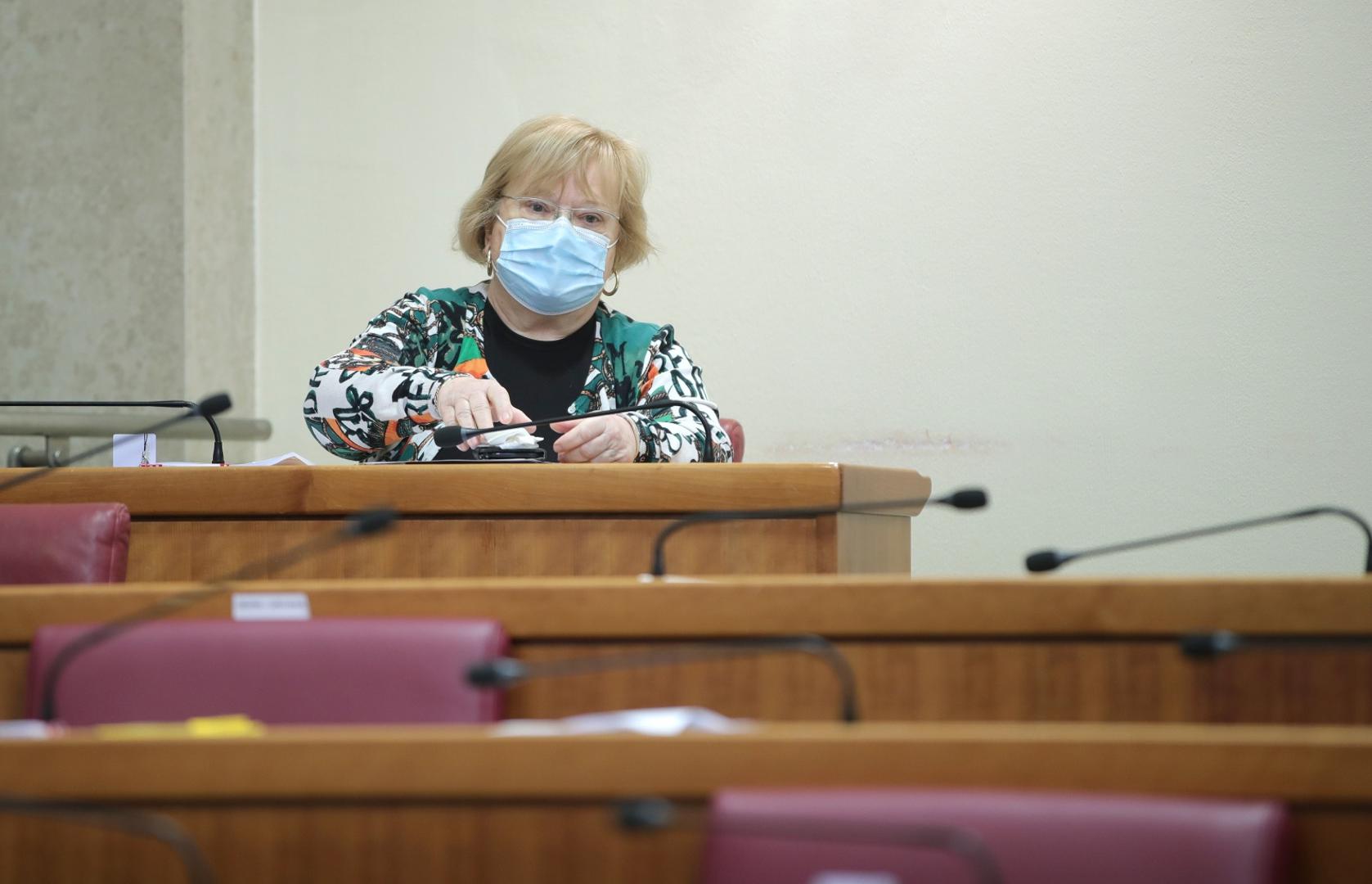26.02.2021., Zagreb - Hrvatski sabor. Nastavak 6. sjednice Hrvatskog sabora raspravom o dva zakona iz sektora Ministarstva poljoprivrede kojima se jaca sluzbena kontrola u lancu proizvodnje hrane, dok uobicajenog glasovanje petkom neće biti. Anka Mrak Taritas. Photo: Sanjin Strukic/PIXSELL