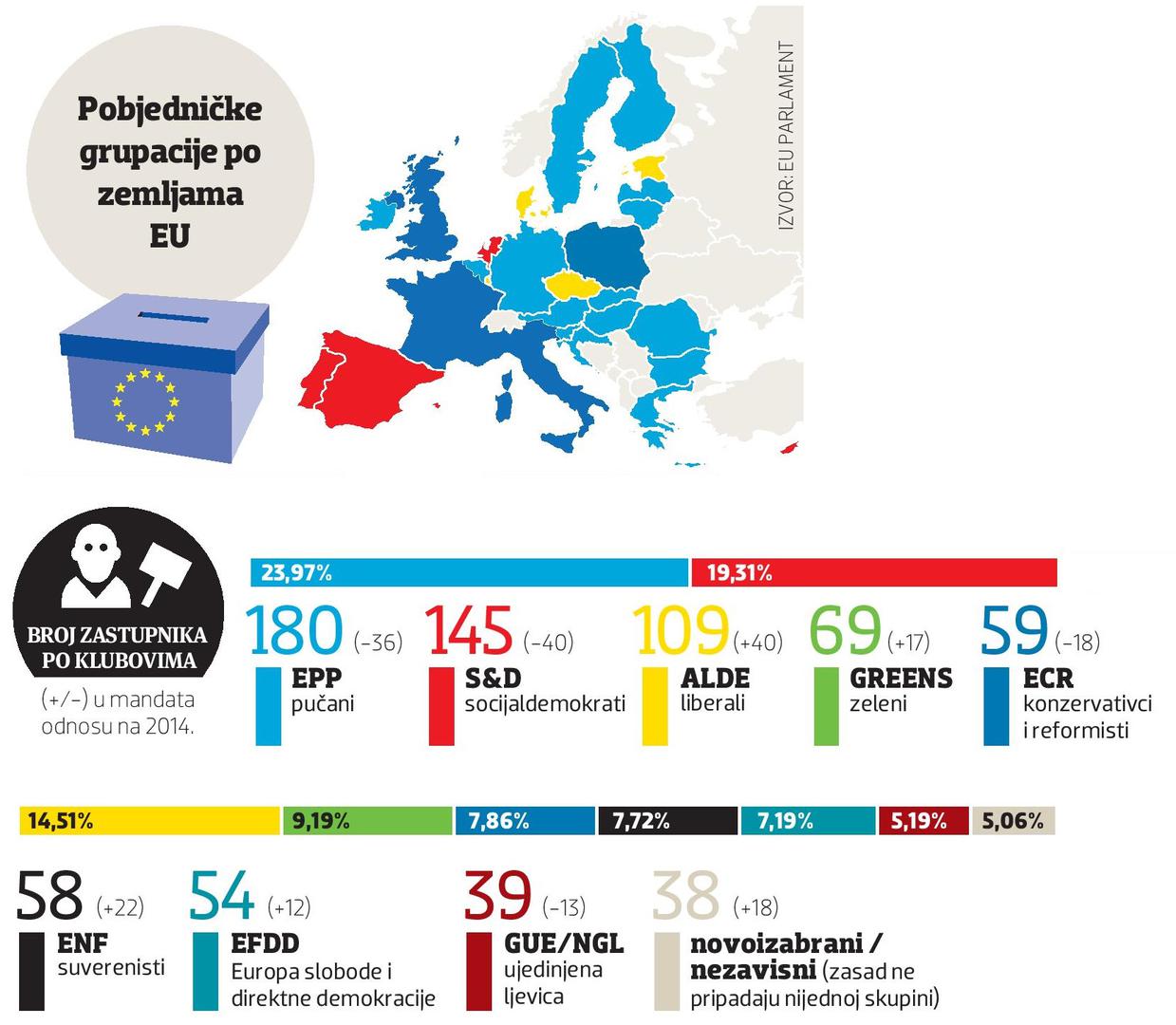 U redovima socijalista i demokrata, među najvećim gubitnicima je njemački SPD, koji je pao s 27 na 16 zastupnika. Talijanska stranka PD pala je s 31 na 18 zastupnika, ali zapravo je popravila rejting u usporedbi s posljednjim nacionalnim izborima u Italiji, tako da se oporavljaju. U Italiji, Liga na čelu s Matteom Salvinijem skočila je s 5 mandata u prošlom sazivu EP-a na 28 u novom.