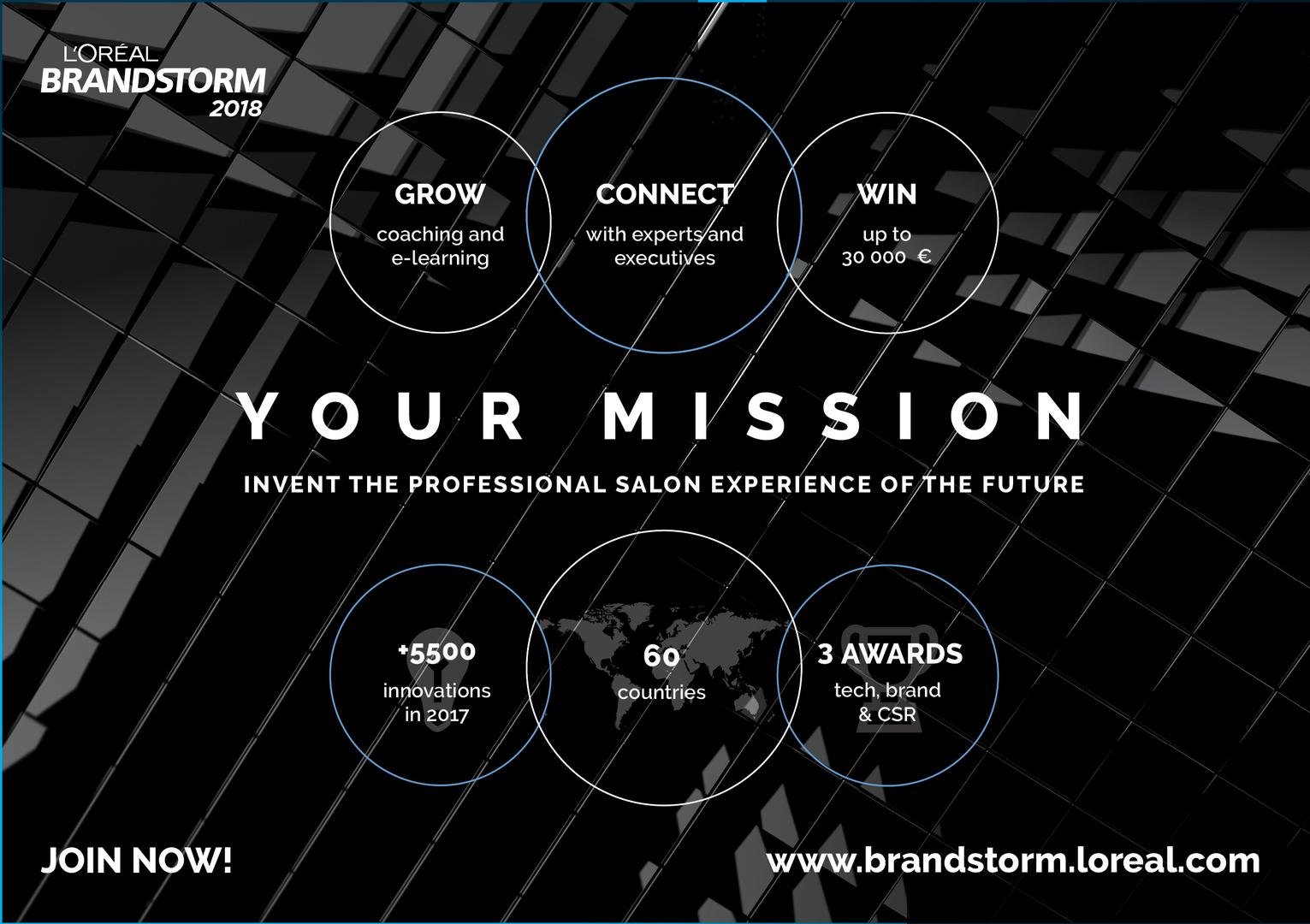 Svjetsko studentsko natjecanje L'Oréal Brandstorm 26. godinu zaredom nastavlja pozivati studente diljem svijeta da pokažu svoje talente i inovativnost. Ovogodišnji izazov sudionicima je osmišljavanje frizerskog salona budućnosti, a najbolje studentske timove L'Oreal u Parizu nagrađuje trima nagradama - za najbolju promociju brenda L'Oreal Professionnel (BRAND AWARD), za najbolju tehnološku inovaciju (TECH AWARD) te društvenu odgovornost zamišljenog koncepta (CSR AWARD), a svaka nagrada nosi novčani iznos u vrijednosti 10 000 eura. Zainteresirani studentski timovi mogu se prijaviti online do 26. veljače 2018. godine.