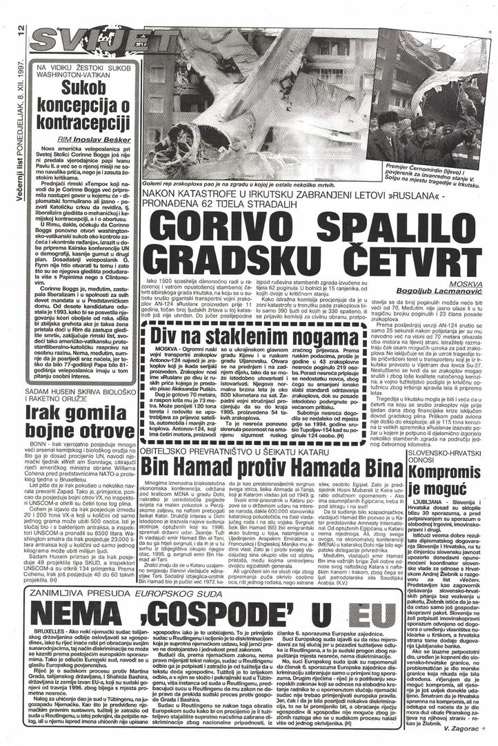Na današnji dan prije 25 godina dogodila se strašna zrakoplovna nesreća u kojoj je sudjelovao ruski gigantski zrakoplov Antonov An-124 koji se nedugo nakon polijetanja srušio na stambenu četvrt u sibirskom gradu Irkutsku. Zrakoplov je poletio iz Sjeverozapadne zračne luke Irkutsk, a odredište mu je trebala biti zračna baza Cam Ranh u Vijetnamu.