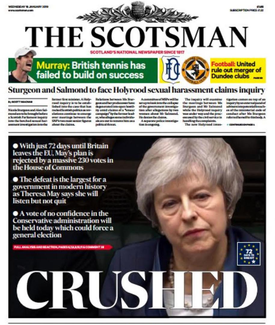 'Ovo je katastrofalan poraz': Parlament odbacio sporazum, u srijedu izglasavanje nepovjerenja