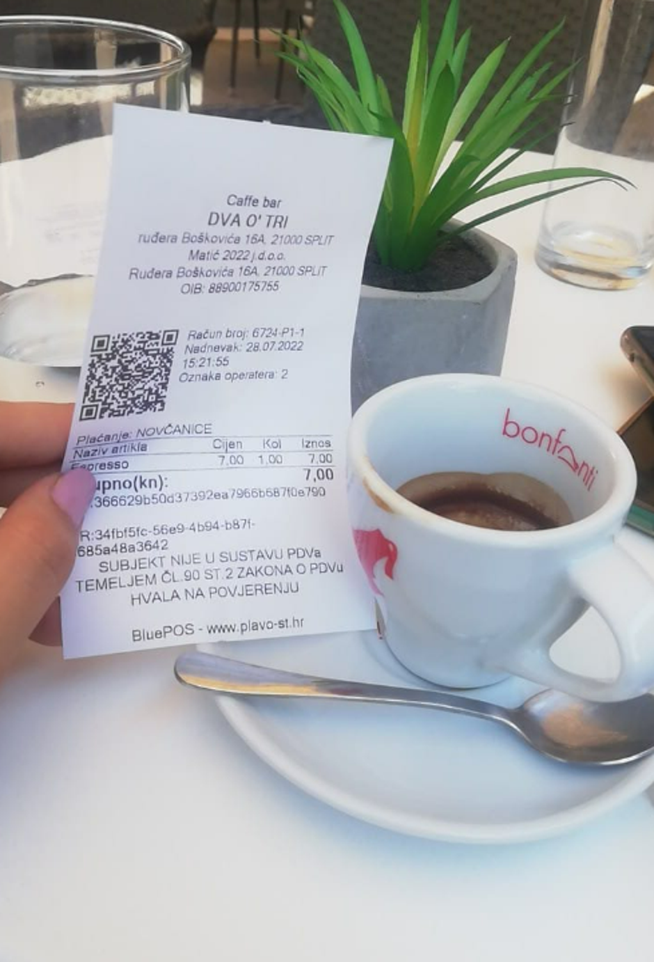 U grupi 'Split i oko Splita' na Facebooku korisnik je danas objavio račun iz jednog splitskog kafića.