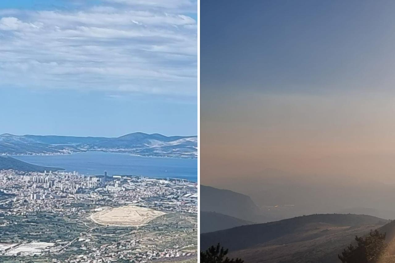 Desno je fotografija s iste lokacije nastala danas. Od dima se ne vidi gotovo ništa.