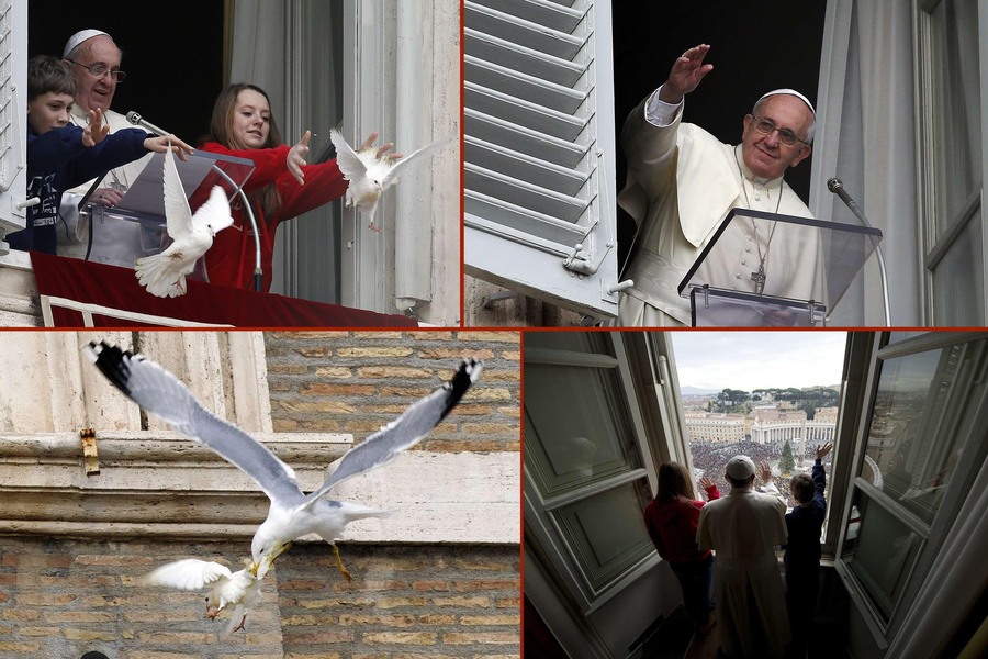 Dva goluba koji su u znak mira pušteni s prozora papinske palače nakon nedjeljnog angelusa pape Franje napali su galeb i gavran. Jednog je goluba u nekoliko sekundi ubio galeb. Drugi se uspio izvući.