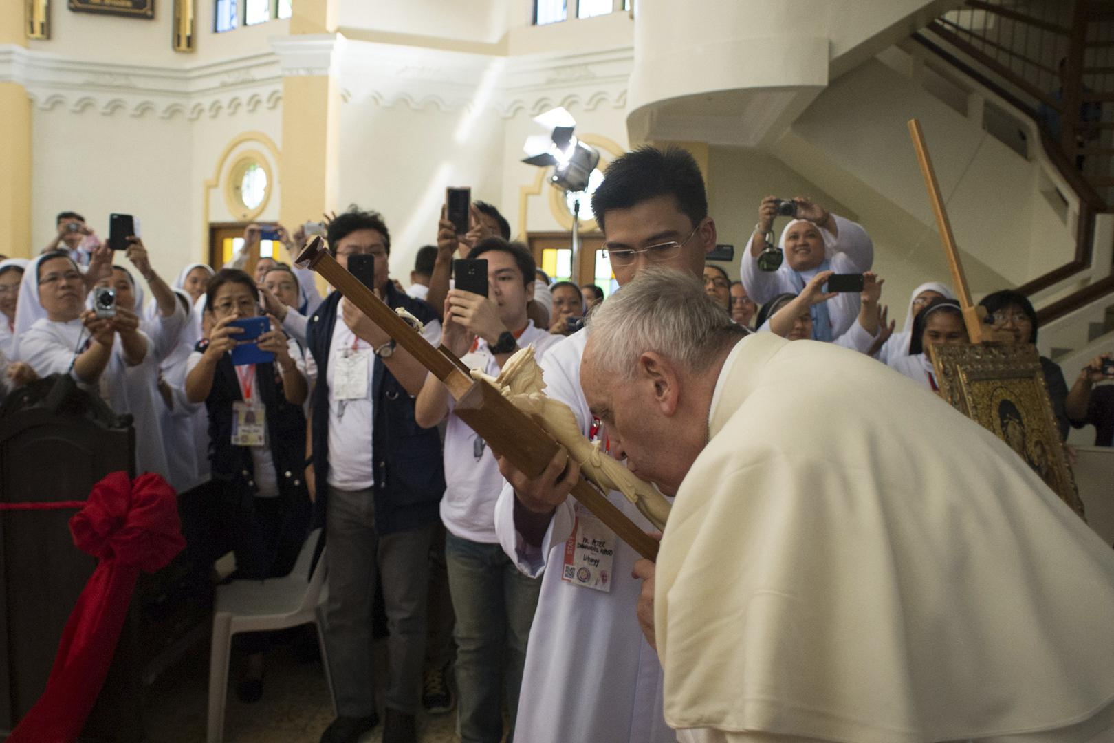 Papa Franjo stigao je danas na filipinski otok Leyte kako bi utješio pučanstvo stradalo 2013. godine u tajfunu Yolanda, a morao je otići četiri sata prije predviđenog zbog dolaska novog tajfuna Amang.
