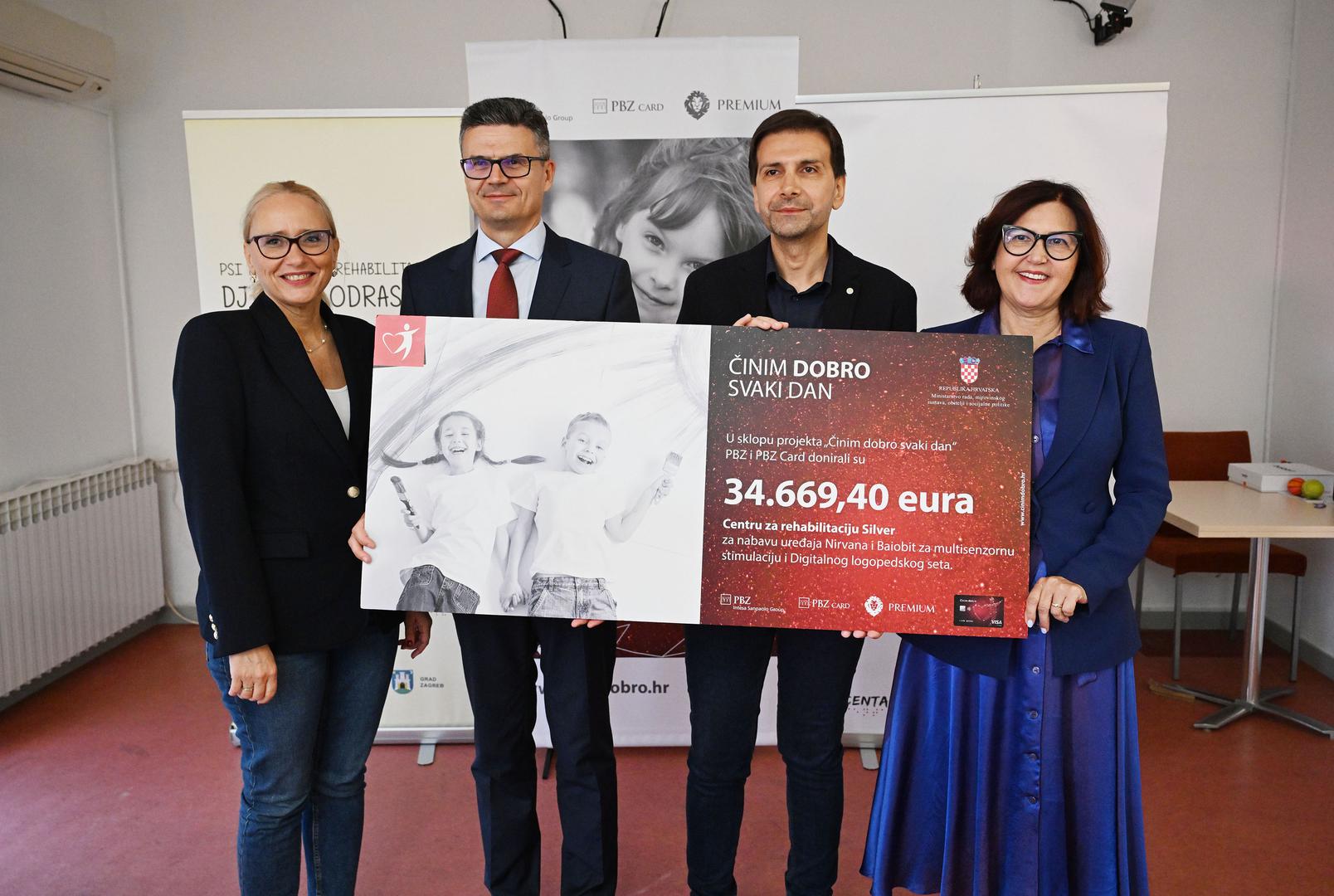 PBZ grupa, dio Intesa Sanpaolo Grupe, u sklopu svog humanitarnog projekta „Činim dobro svaki dan“ i Visa kartice sa srcem donirala je 34.669,40 eura Centru za rehabilitaciju Silver. To je 96. donacija PBZ grupe u sklopu ovog projekta, a donirana sredstva Centar za rehabilitaciju Silver iskoristio je za nabavku Nirvane – inovativnog i jedinstvenog uređaja u Hrvatskoj i Baiobita - namijenjenih multisenzornoj stimulaciji te Digitalnog logopedskog seta. Donacija je realizirana u suradnji s Ministarstvom rada, mirovinskog sustava, obitelji i socijalne politike, dugogodišnjim partnerom PBZ grupe na projektu „Činim dobro svaki dan“.