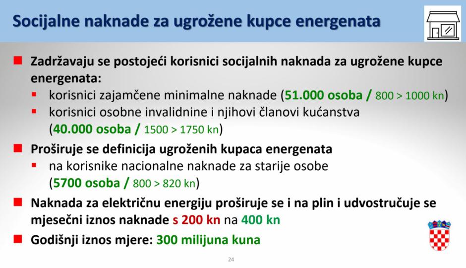 – U ovom paketu pružit ćemo i mjesečnu naknadu za pružatelje socijalnih usluga, za 46.000 primatelja socijalnih usluga. Ciljamo pravne osobe, one će dobiti od 1000 do 4000 kuna, riječ je o pružateljima usluga smještaja, organiziranog stanovanja i boravka. Naknada će biti dostupna i udomiteljskim obiteljima od 400 kuna.