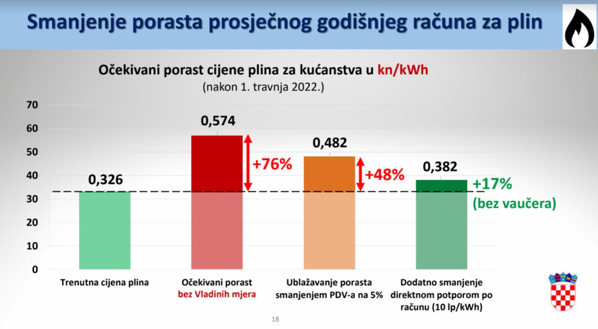 – Da Vlada ne donosi ovaj paket mjera, od 1. travnja računi za struju bi poskupjeli 23 posto, a za plin 79 posto – rekao je Plenković. Hrvatska proizvodi tek pet posto plina koji se potroši.