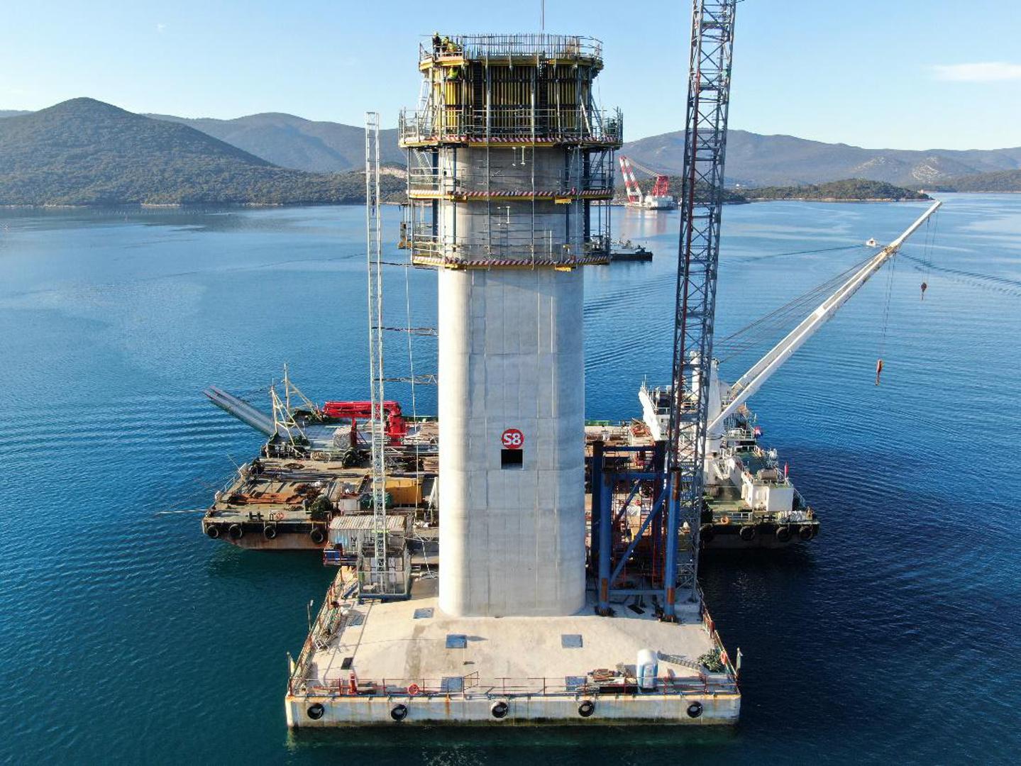 Radi se na svih 12 stupnih mjesta i dva upornjaka. Osim dva kopnena stupa, što će tiče radova na morskim stupovima oni su najviše odmakli na S5, S7 i S8.