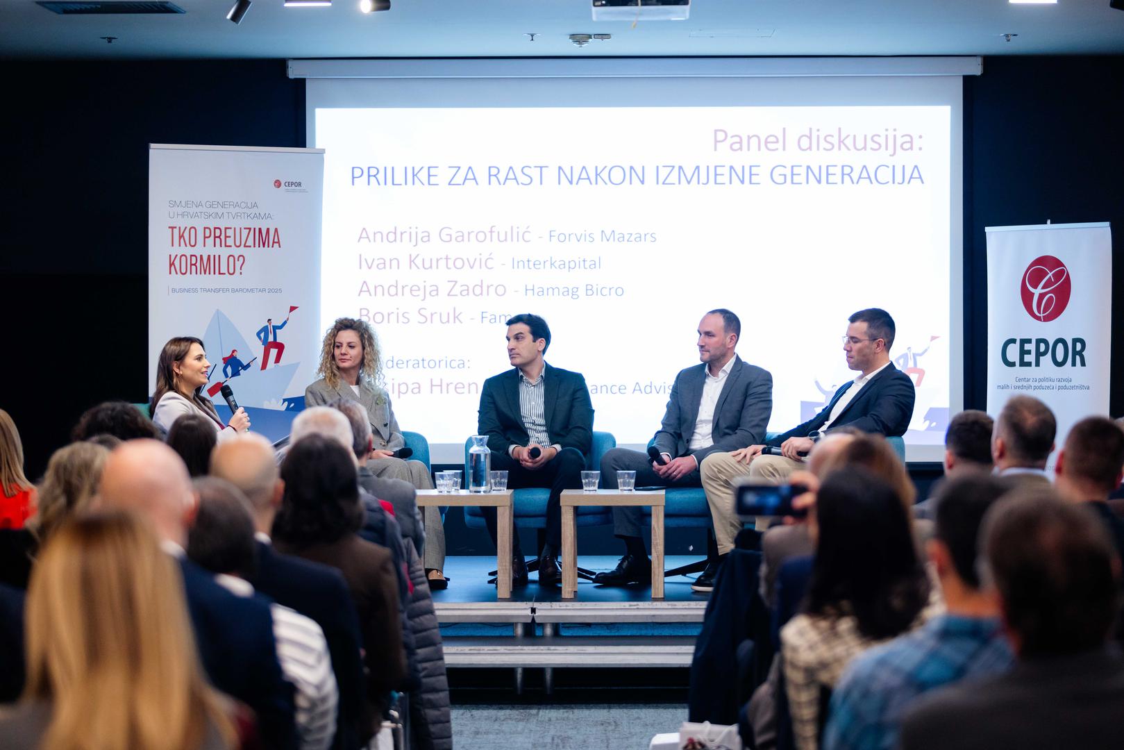 Tijekom konferencije javnosti je prezentiran Business Transfer Barometar 2025, istraživanje o prijenosu poslovanja u hrvatskim tvrtkama, s ekskluzivnim podacima o tome koliko je domaćih tvrtki - u odnosu na prvo takvo istraživanje iz 2015. - uspješno prošlo kroz prijenos vlasništva, koliko ih se ugasilo te koji su bili najčešći razlozi neuspjeha.
