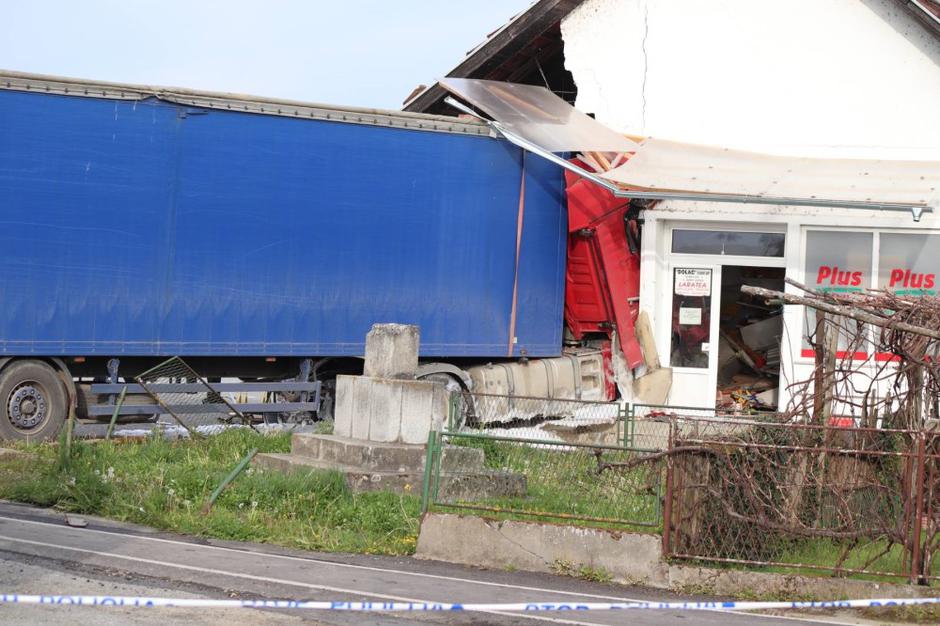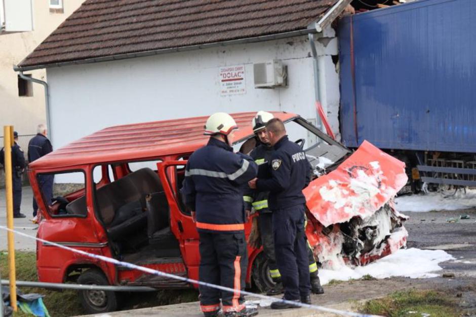 Od siline udarca kombi je odbačen u putni kanal, a kamion se nastavio kretati i završio u trgovini.