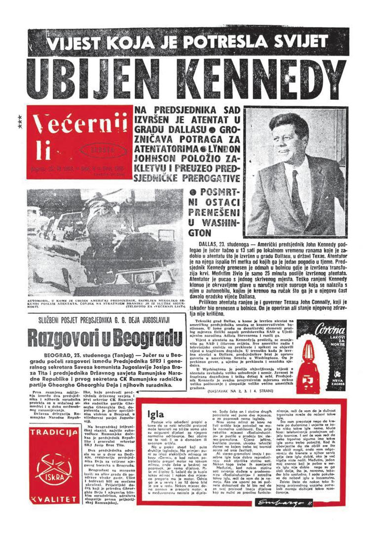 Klikom na fotografiju ispod možete pogledati izdanje Večernjeg lista iz 1963. kada se dogodio atentat na Kennedyja.