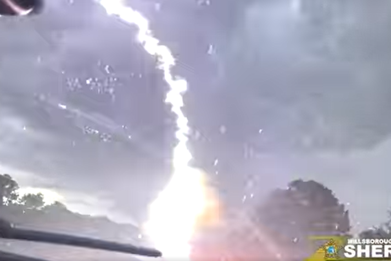 Šerifov ured okruga Hillsborough u američkoj državi Floridi objavio je nevjerojatan video koji je snimila žena koja se za vrijeme oluje vozila iza policijske službenice. Munja je udarila u policijski auto, a zatim i u njen, proizvevši prasak i crni dim.