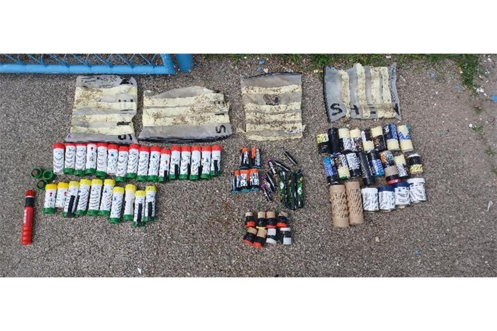 Reagirajući na Benđijevu indikaciju, policijski su službenici uklonili travnate busene na označenom mjestu te pronašli četiri PVC vrećice zakopane ispod trave. U vrećicama se nalazilo ukupno 71 komad pirotehničkih sredstava, uključujući bengalke, bljeskalice, topovske udare i dimne kutije.