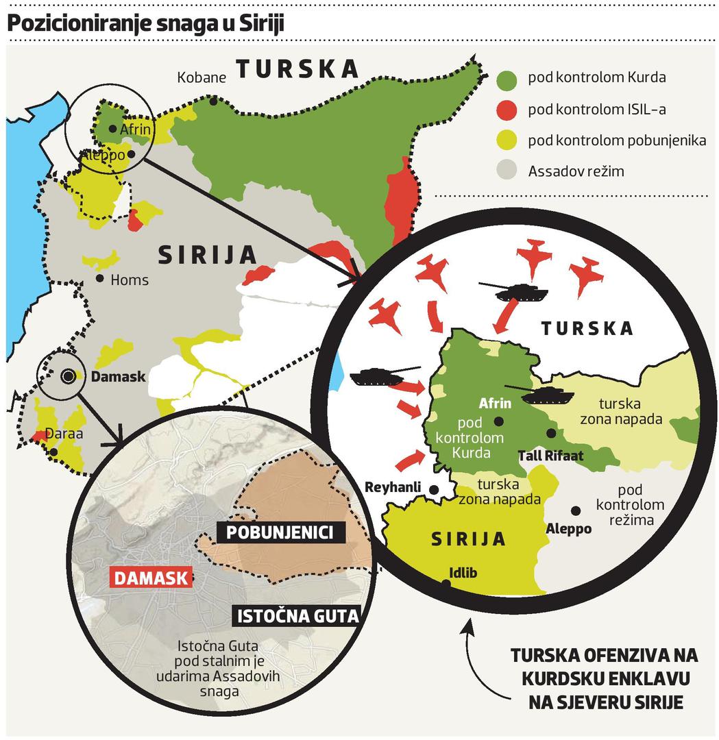 Iako su potkraj 2017.godine i Rusi i Amerikanci dogovorili da će okončati rat u Siriji 2018. godine s obzirom na to da je poražena teroristička organizacija Islamska država, na terenu se situacija ipak sve više komplicira pa je rat u Siriji prerastao u rat svih protiv svih. Američki bombarderi bombardiraju položaje sirijske vojske, a istodobno, na teritoriju Sirije vodi se otvoreni rat između Irana i Izraela dok je Turska pokrenula ofenzivu protiv sirijskih Kurda. Svaki od tih sukoba može prerasti u ratove s dalekosežnim posljedicama u koje bi se uključile i velike i regionalne sile, SAD, Rusija, Iran, Saudijska Arabija i Turska.