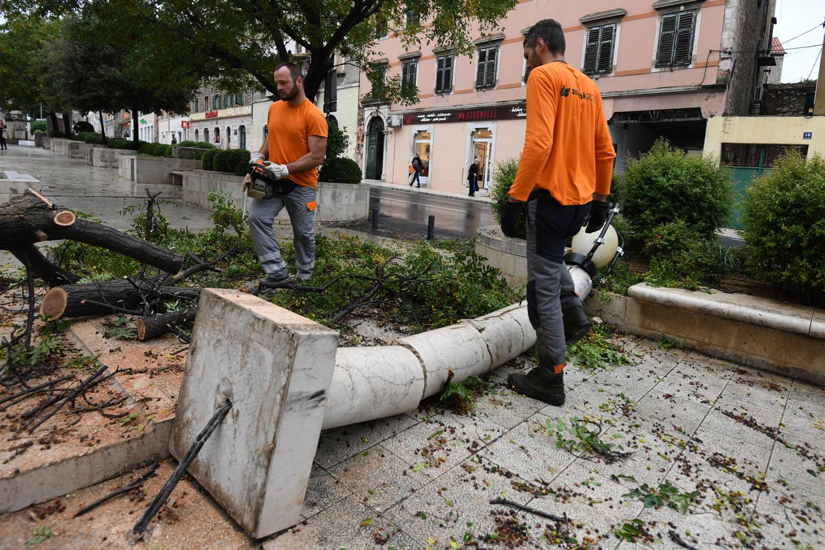 Posljedice snažne oluje u Dalmaciji: Poplavljene brojne ceste, u Šibeniku jugo srušilo betonski stup
