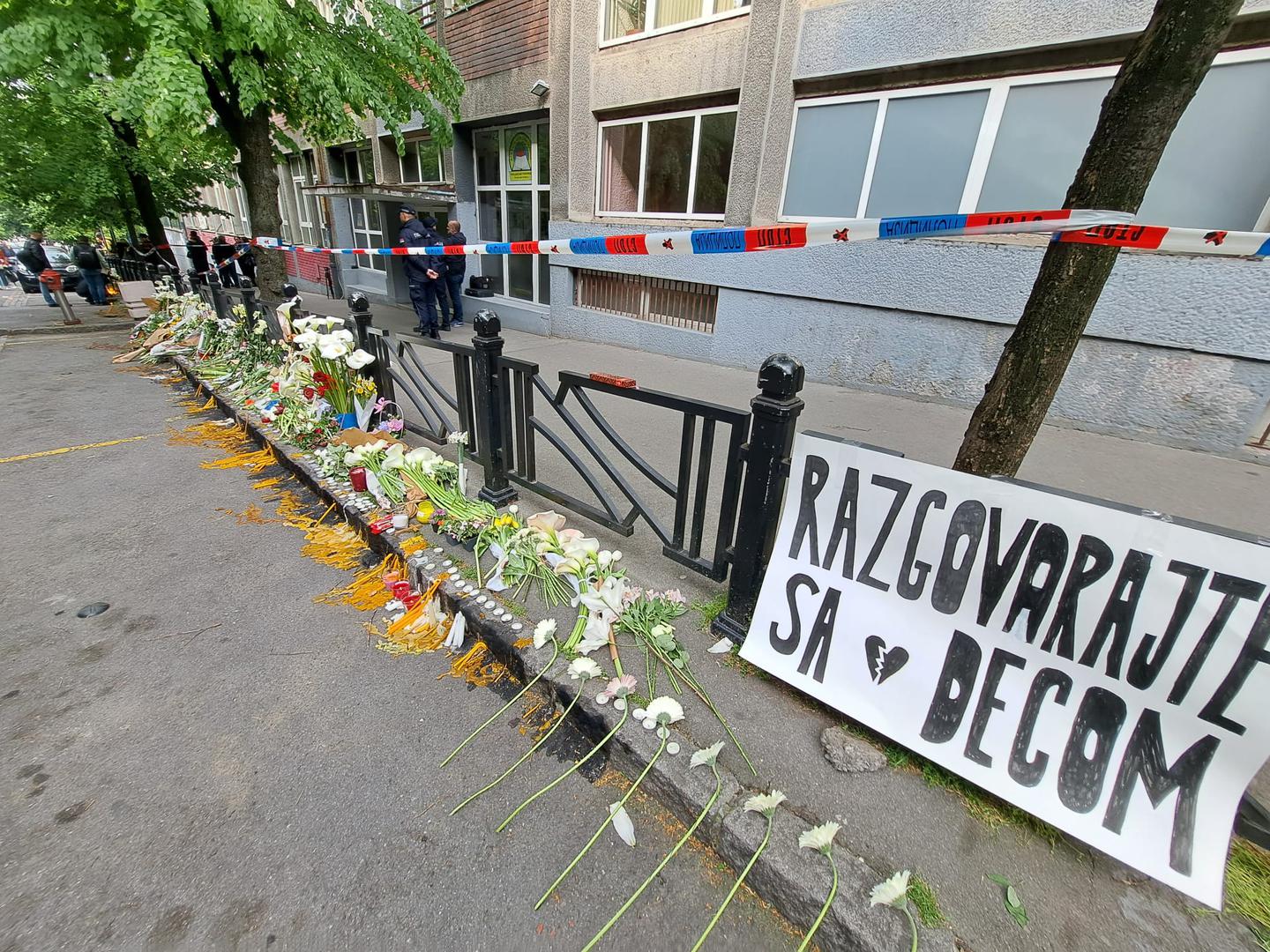 03, maj, 2023, Beograd - Gradjani polazu cvece i pale svece ispred Osnovne skole "Vladislav Ribnikar” gde se jutros desila tragedija kada je ucenik sedmog razreda ubio osam ucenika i radnika obezbedjena. Photo: Milos Tesic/ATAImages Photo: Milos Tesic/ATAImages/PIXSELL
