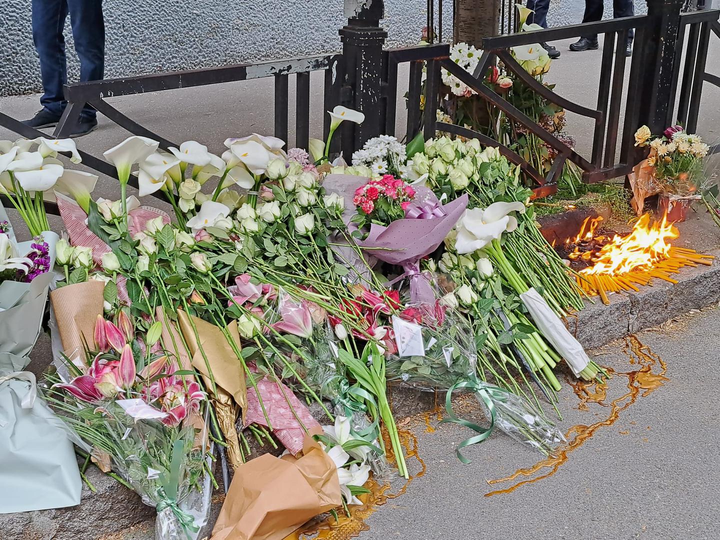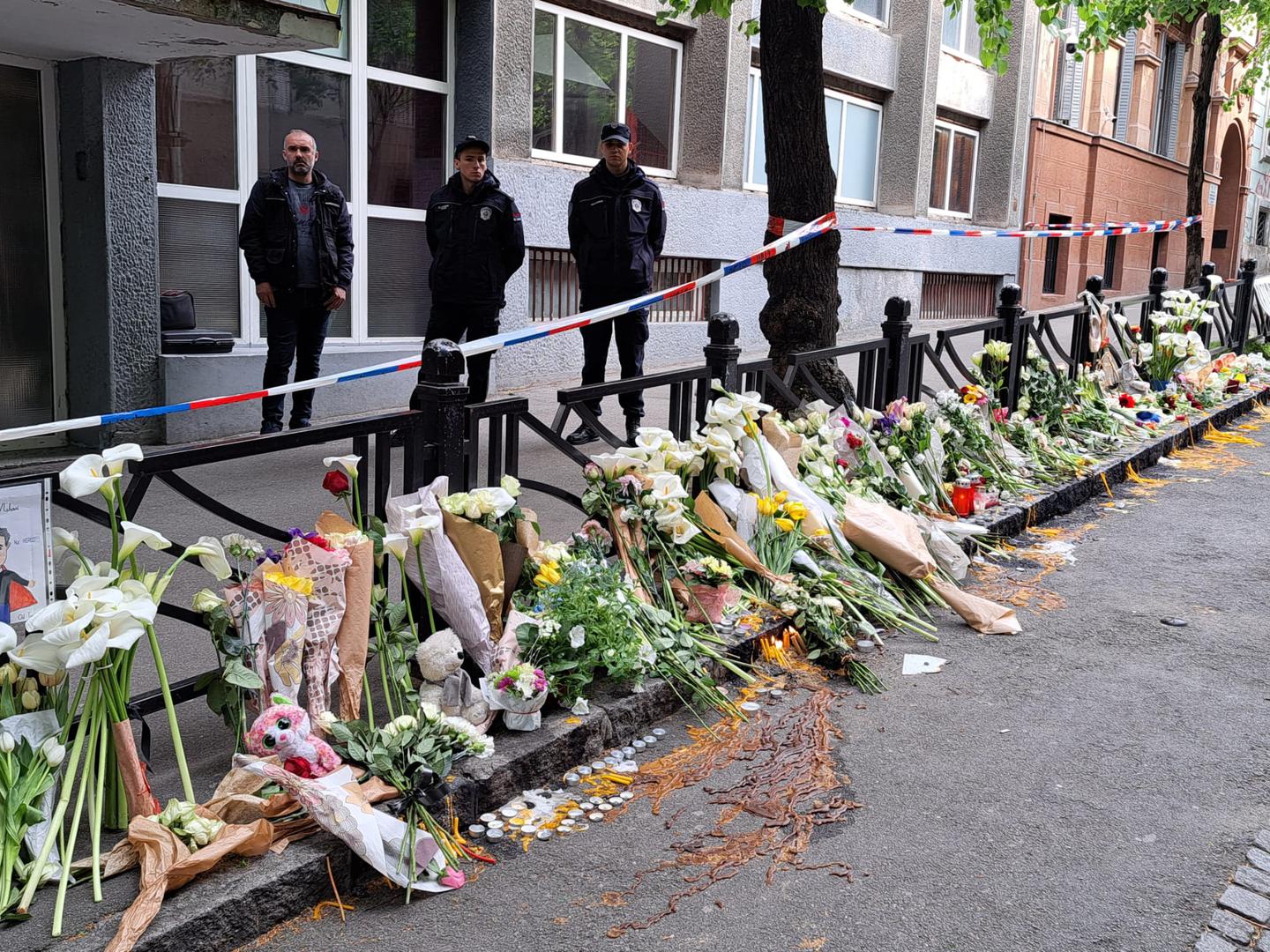 03, May, 2023, Belgrade - Citizens lay flowers and light candles in front of the "Vladislav Ribnikar" Elementary School, where a tragedy occurred this morning when a seventh-grade student killed eight students and a security guard. Photo: Milos Tesic/ATAImages