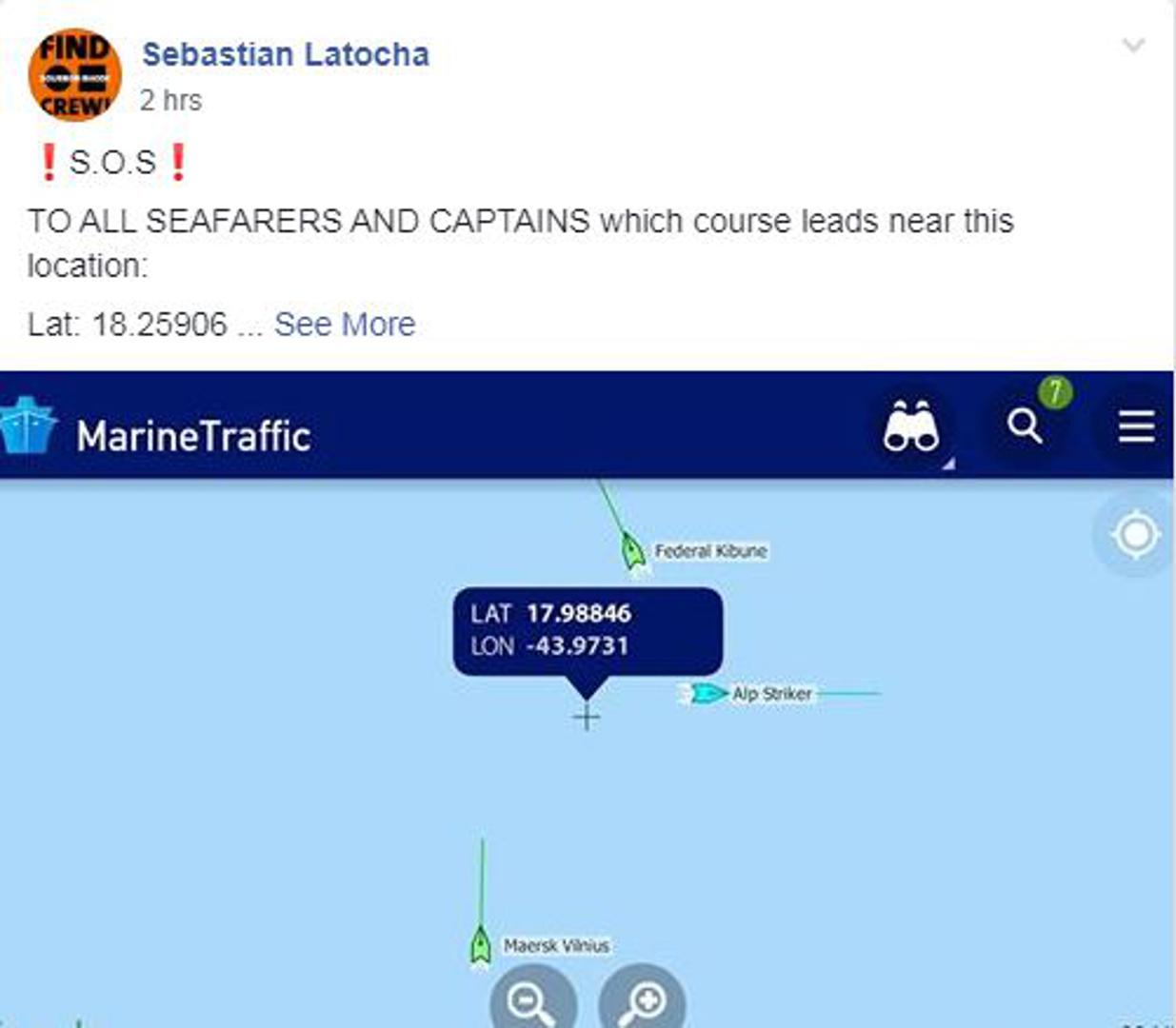 - Molim vas, podijelite ove informacije i ako ste u mogućnosti proći tim putem, to bi pomoglo i povećalo mogućnost bržeg pronalaska nestalih pomoraca - napisao je Latocha.