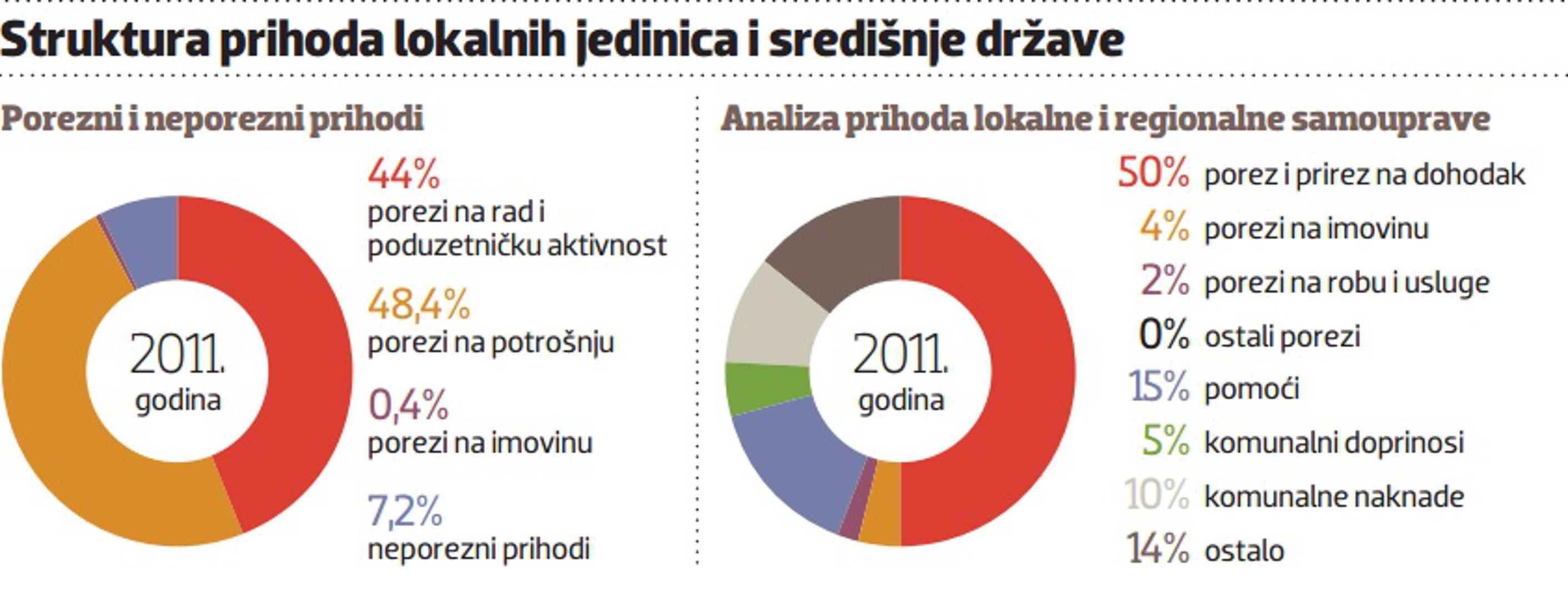 Godišnje se od komunalne naknade u budžete jedinica lokalne samouprave sliju oko dvije milijarde kuna. Vlada računa da bi nakon 2018. mogla naplatiti 300 milijuna kuna više, i to ne toliko od povećanih komunalnih naknada nego od oporezivanja građevinskog zemljišta. Simulacije pokazuju da bi za stan od 70-ak kvadrata u Zagrebu sagrađen 1980. jednostavni porez bio 50-ak kuna mjesečno, slično kao i komunalna naknada sada. Nakon što zakon stupi na snagu, porezna uprava i lokalne vlasti imaju godinu dana da u vrijednost budućeg jednostavnog poreza uključe starost i kvalitetu nekretnine, a ne samo broj kvadrata kao što je to slučaj s komunalnom naknadom. Od 2018. bi se i porez na kuće za odmor (sada 5-15 kuna po kvadratu) utopio u jednostavni porez. Dvije godine kasnije počelo bi pravo oporezivanje nekretnina prema tržišnoj vrijednosti. Smanjenje poreza na dobit ne traži takve pripreme kao smanjenje poreza na plaće, dijelom i stoga što je dohodak prihod lokalnih jedinica na koje je dodatno udario i Most kroz svoja dva ultimativna zahtjeva – da se ukine porez na tvrtke te da se ograniče izdaci za plaće zaposlenih. Lokalne bi se jedinice lakše odrekle poreza na tvrtke nego dijela prihoda od poreza na dohodak jer im dohodak godišnje donosi oko 11 milijardi kuna, a porez na ime tvrtke samo 130 milijuna kuna! Da stvar bude intrigantnija, porez na ime tvrtke je, prema izračunu Udruge gradova, najveći u Metkoviću i donosi im 3,5 posto ukupnih prihoda, dok se kod drugih lokalnih jedinica mjeri u promilima ili je ispod 1%. Primjerice, Zagreb godišnje naplati samo 12 milijuna kuna poreza na ime tvrtke.