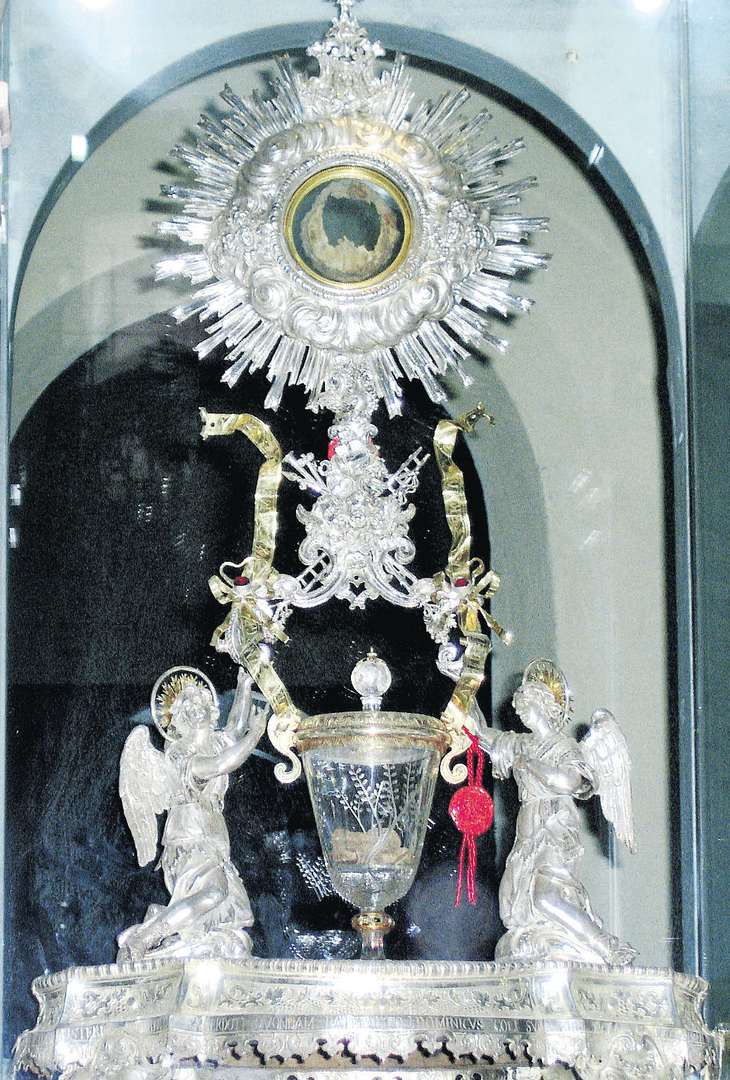 Da se euharistijsko čudo dogodilo u osmom stoljeću u Lancianu, malenom talijanskome gradiću smještenom u gorama Abruzza, potvrđuje natpis na kamenoj ploči u tamošnjoj franjevačkoj crkvi: “Oko godine Gospodnje 700. u ovoj crkvi, koja je tada nosila ime sv. Longina, neki je svećenik, monah iz reda sv. Bazilija, posumnjao da je sveta hostija doista tijelo Gospodinovo, a vino njegova krv. Slavio je misu i, dok je izgovarao molitvu posvete, vidio je kako se hostija pretvara u tijelo, a vino u krv. Pokazao je to okupljenima, a potom i cijelome narodu. Tijelo je sačuvano u cijelosti, a krv se zgrušala i podijelila na pet nejednakih dijelova. Sve se to može vidjeti u kapeli koju je dao izgraditi Giovanni Francesco Valsecca godine Gospodnje 1636.”