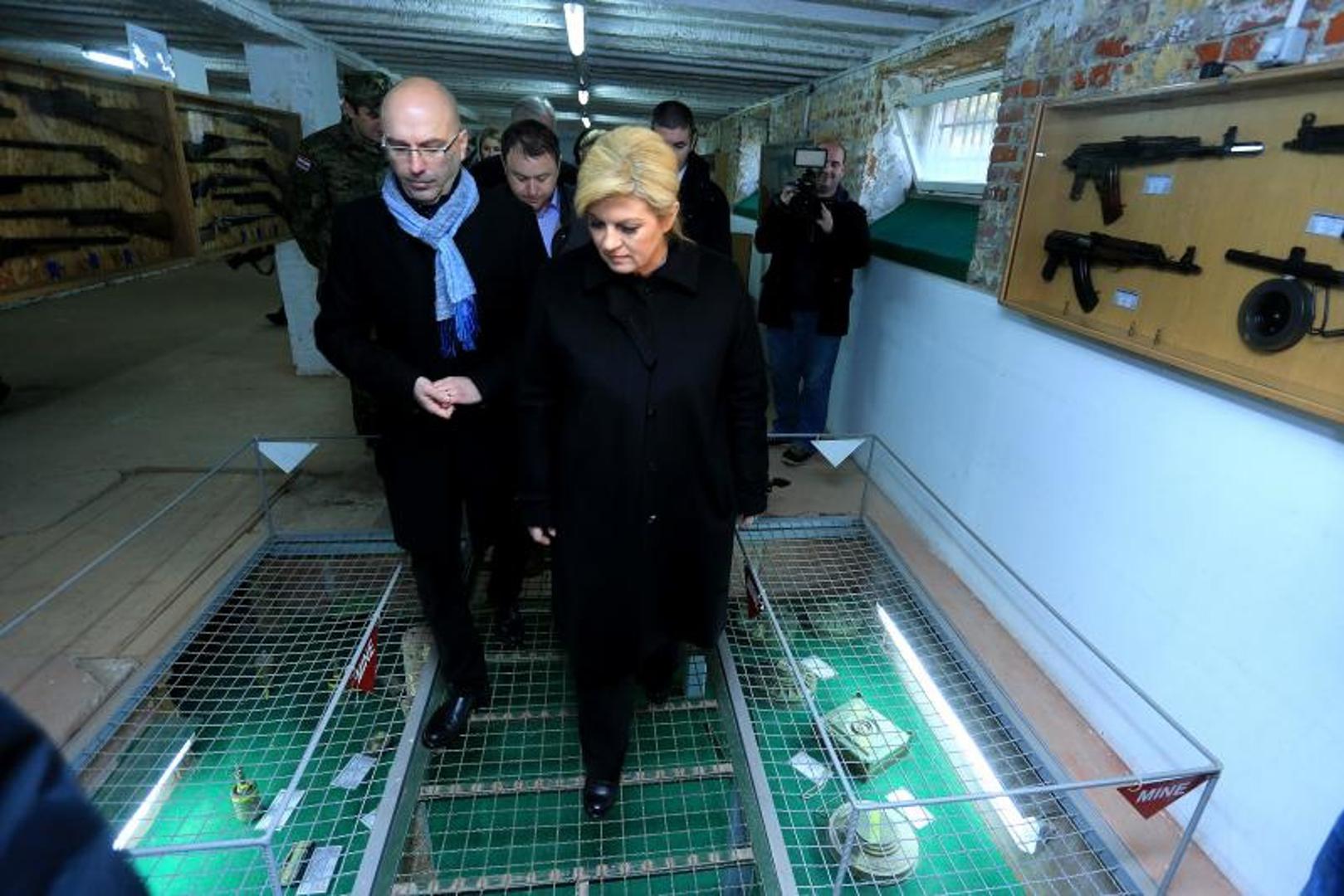 Predsjednica je u sat vremena upoznata s sadržajem i planovima Javne ustanove pa je tako imala prilike vidjeti izloženo naoružanje korišteno u Domovinskom ratu, ali i postav muzeja s nizom vojnih i topografskih karti, fotografija... Vidjela je i maketu logora Stajićevo i Begejci gdje su bili zatvarani Vukovarci. Isto tako položila je i vijenac podno spomen obilježja u krugu vojarne u spomen na troje poginulih tijekom helikipterske nesreće 2007. godine.
