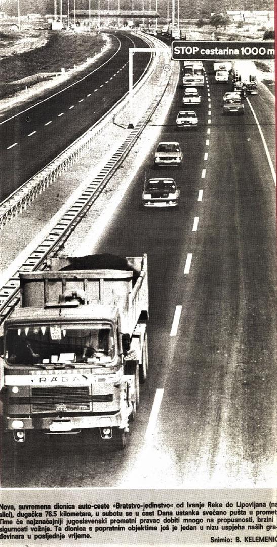 No, važnije od brzine bilo je to što je taj frekventni pravac tada značajno dobio i na sigurnosti prometa. Naime, autoput Zagreb-Beograd, tih je godina, bio neslavni rekorder po broju prometnih nesreća s poginulim osobama, a razlog je, uglavnom, bio loše stanje prometnice, na kojoj je, u to vrijeme, promet bio prilično gust. Naša arhiva čuva i zanimljive brojčane podatke, prema kojima je, godine 1977., zabilježen promet od prosječno 15 000 vozila dnevno, 1978. taj je broj povećan na 17 tisuća, dok je za 1980-u, kada je otvorena dionica Ivanja Reka-Lipovljani, predviđeno dodatno povećanje tog broja na 20 do 21 tisuću vozila na dan. Čak 38 posto, od tog ukupnog broja, bila su teretna vozila, uglavnom strana, što je bila i dodatna potvrda međunarodne važnosti novootvorene prometnice, koja je bila jedan od najznačajnijih objekata iz srednjoročnog plana izgradnje magistralnih kilometara u tadašnjoj Hrvatskoj.