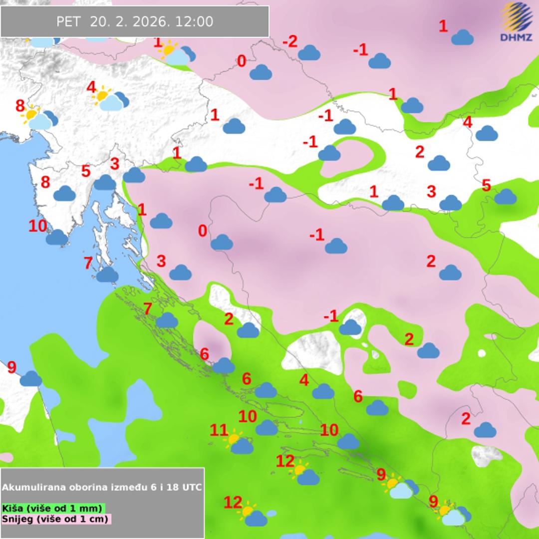 Ujutro će na sjevernom Jadranu i na sjeverozapadu doći do postupnog smanjenja naoblake, kao i navečer na krajnjem jugu i istoku zemlje. Prijepodne se još mjestimice očekuje oborina na južnom Jadranu i na istoku, a poslijepodne je moguć poneki pljusak, posebice u središnjoj i Gorskoj Hrvatskoj. Vjetar će biti slab do umjeren sjeverni i sjeveroistočni, na istoku i sjeverozapadni. Na Jadranu umjeren do jak sjeverozapadnjak, lokalno s olujnim udarima, a uglavnom na sjevernom dijelu i bura. Najviša temperatura zraka bit će od 5 do 9 °C, a na Jadranu između 10 i 14 °C, navodi Državni hidrometeorološki zavod (DHMZ).
