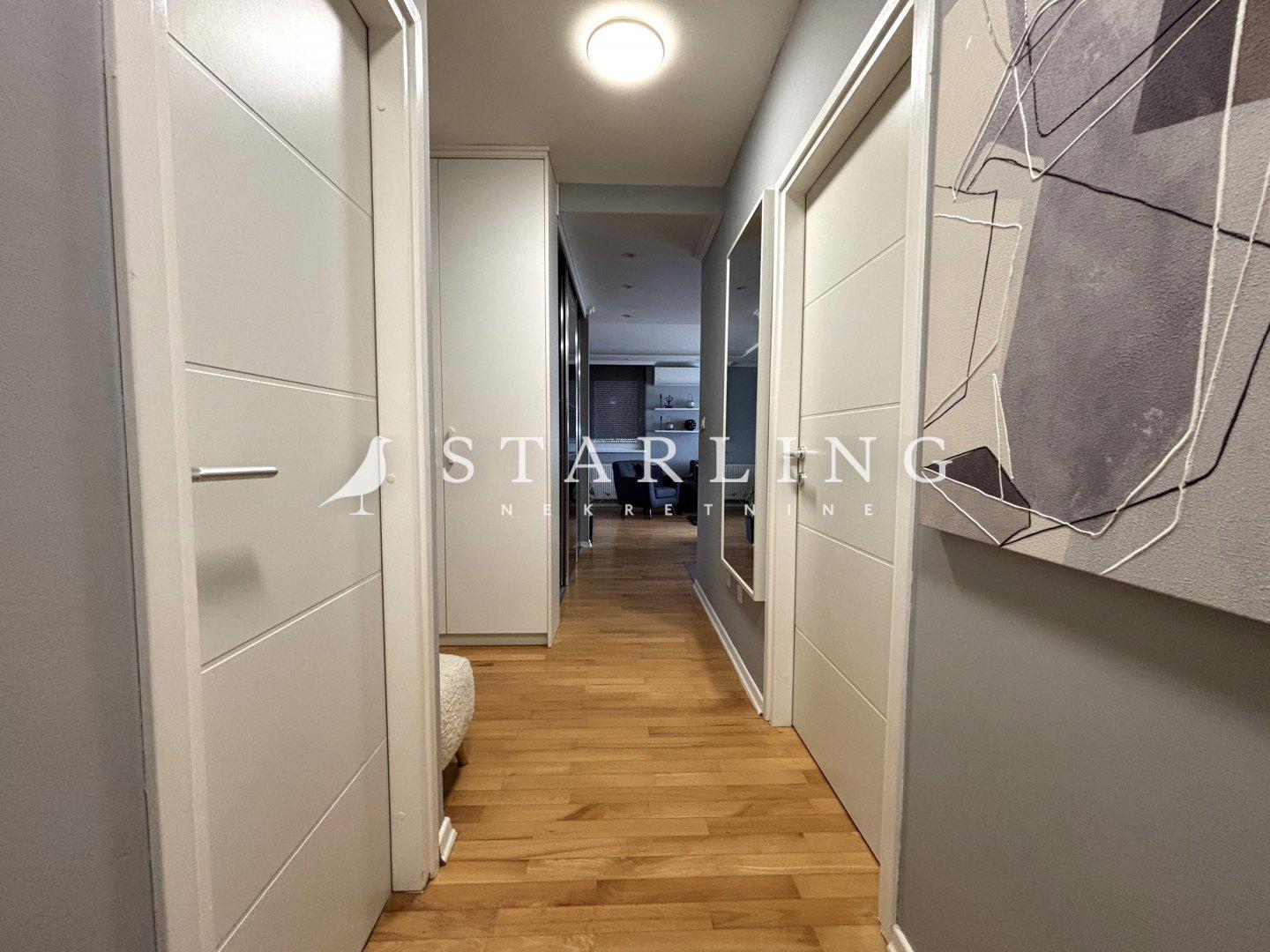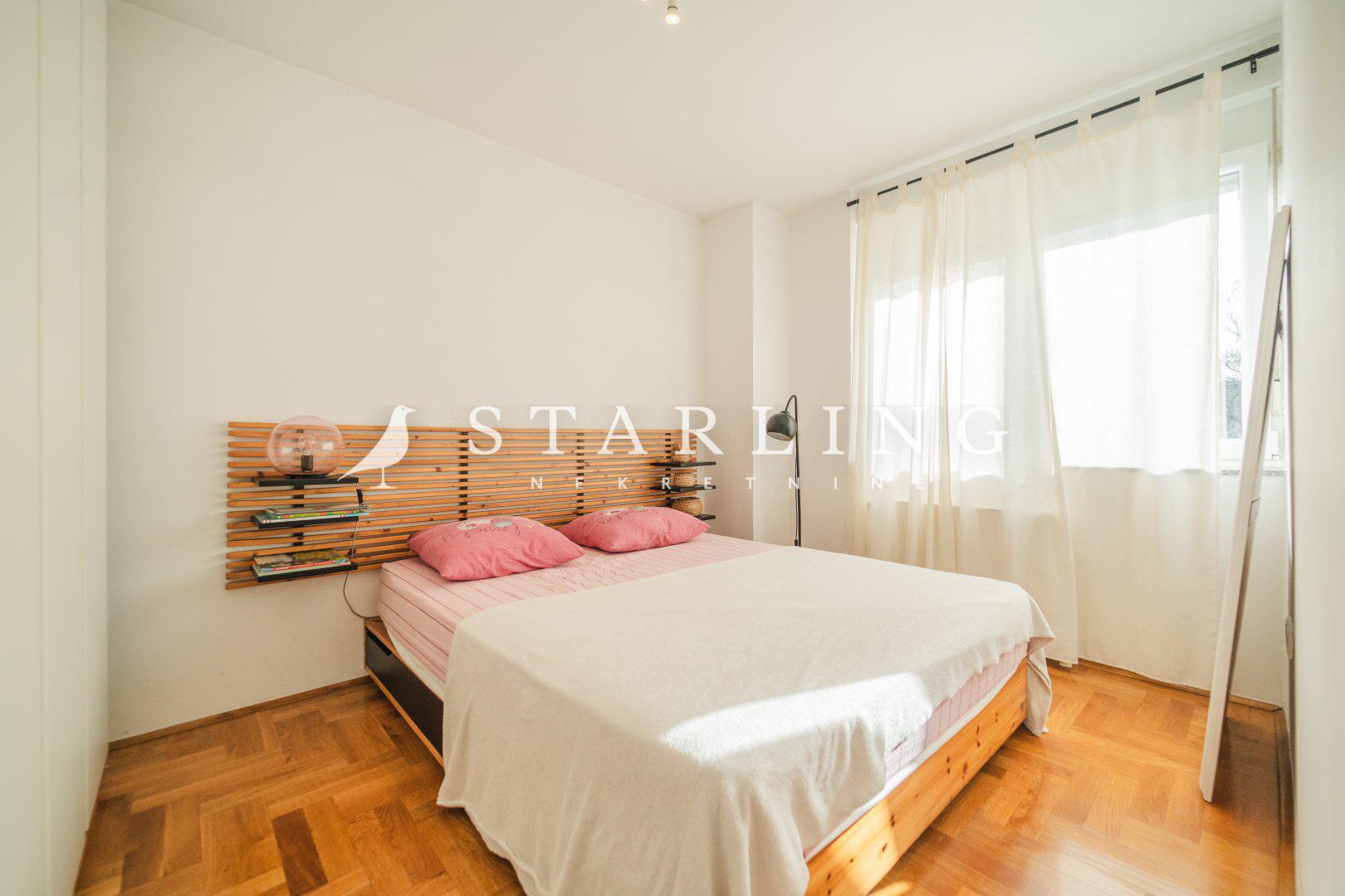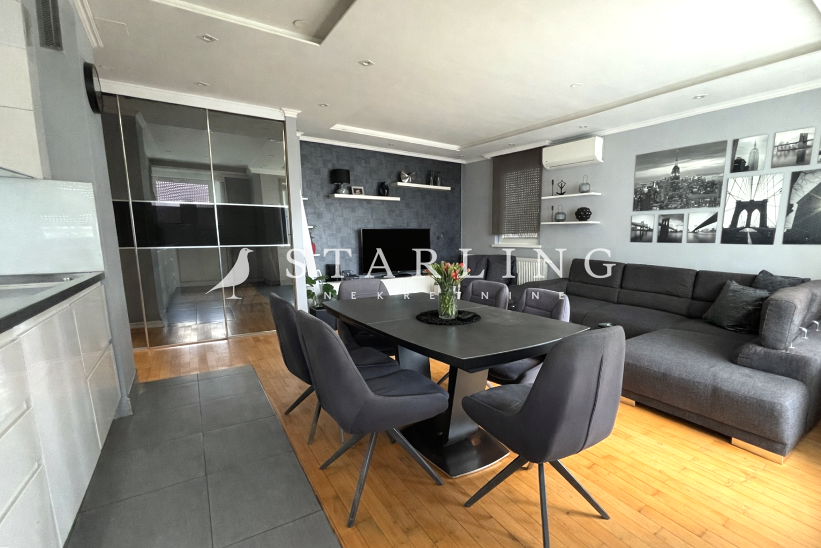 Stan se sastoji od prostranog dnevnog boravka povezanog s blagovaonicom, funkcionalne kuhinje, dvije spavaće sobe, kupaonice, hodnika te dodatnih prostora poput ostave i spremišta. Posebnu vrijednost daju loggia i balkon, koji pružaju dodatni prostor za opuštanje. Iako je posljednja potpuna adaptacija provedena 2008. godine, stan je očuvano i ugodno mjesto za život, s velikim potencijalom za daljnje uređenje prema vlastitim željama.