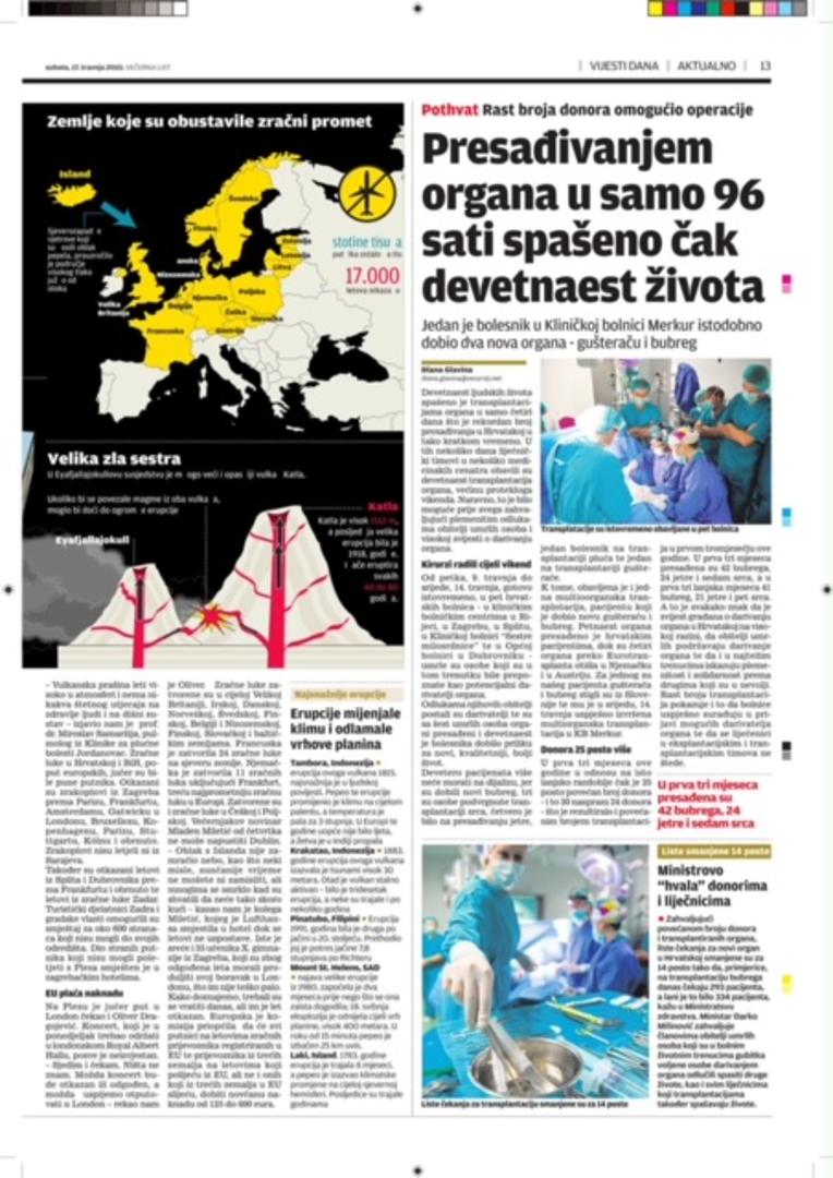 Stotine tisuća putnika ostalo je zarobljeno na aerodromima, a među njima je bilo i 35 učenika i profesora zagrebačke X gimnazije, koji su, zbog odgođenog leta, morali produžiti boravak u Londonu. U isto vrijeme, u Dublinu je 'zaglavio' Večernjakov novinar, Mladen Miletić.
