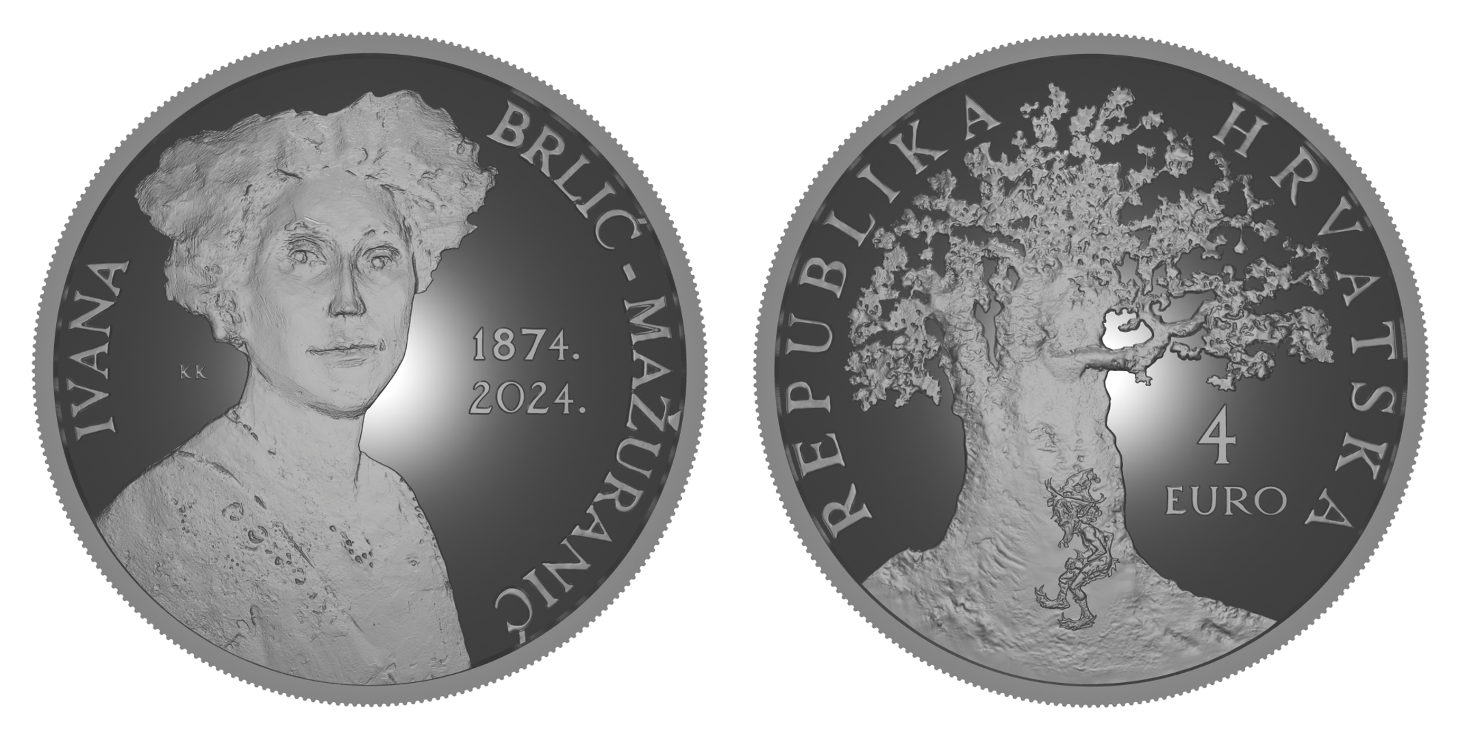 Djelić magije tog nezaboravnog djela, na numizmatičke kovanice nastojao je prenijeti hrvatski akademski kipar Kuzma Kovačić, inače autor idejnih rješenja hrvatskih kovanica kuna i lipa. S velikim poštovanjem prema spisateljici, kreirao je portret Ivane Brlić-Mažuranić u svom prepoznatljivom lirskom izričaju, vjerno odražavajući duh njezinih djela. Na naličju kovanice nalazi se simbolički prizor iz njezinih bajki “Priče iz davnine”, s velikim stablom u šumi pod kojim se nalazi mitski lik, jedan od mnogobrojnih likova iz njezinih priča.