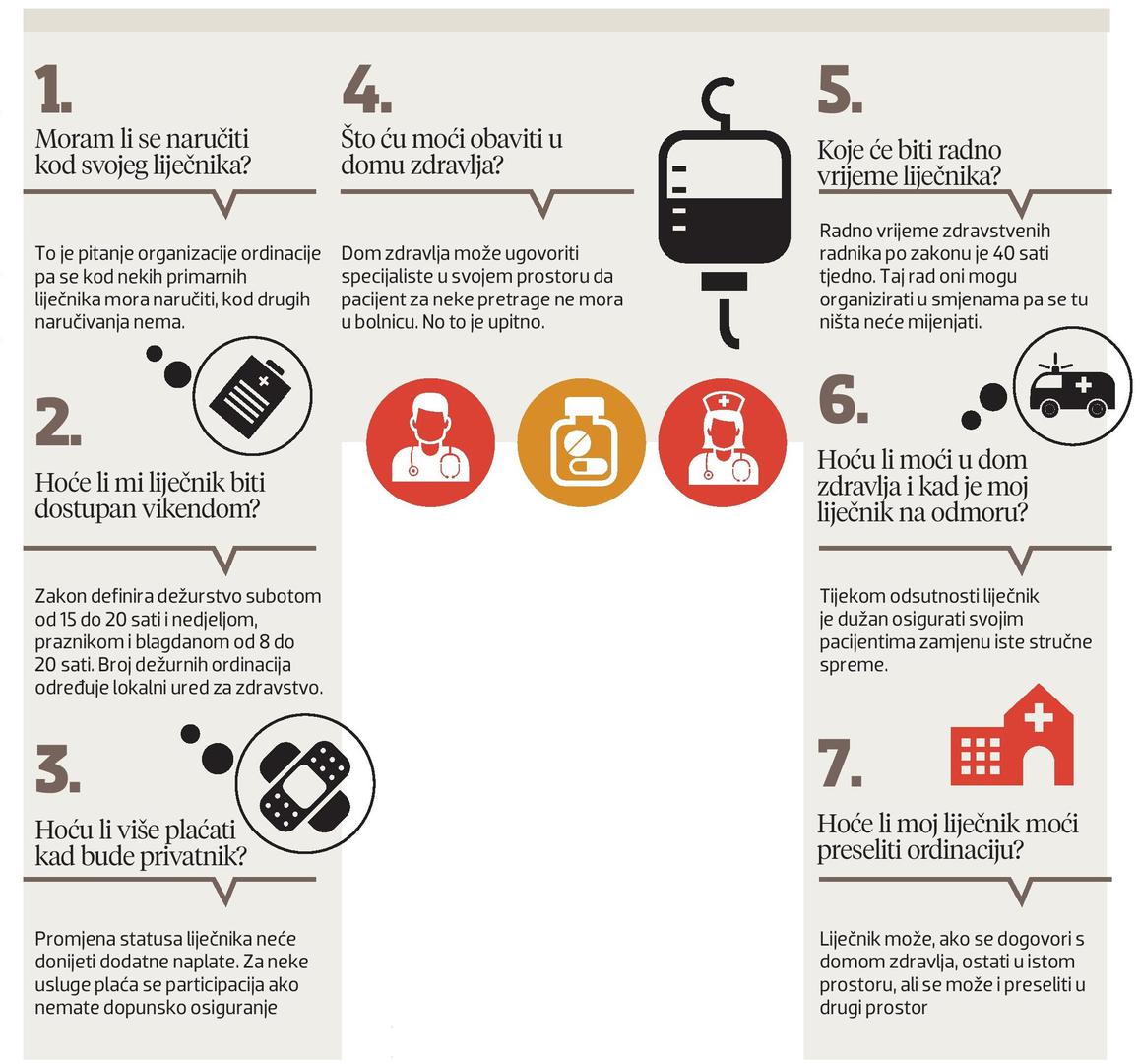 Prema prijedlogu, liječnik koji odlazi u mirovinu ima pravo svoju ordinaciju prenijeti na drugog liječnika koji je prije toga godinu dana radio u njegovoj ordinaciji. No pacijentima je nejasno što će za njih u praksi značiti kada obiteljski liječnik ili pedijatar postane privatnik. Ministarstvo uvjerava da promjena za pacijente neće biti, no činjenica je da će se uvjeti rada, prostor, oprema, radno vrijeme... tek urediti posebnim aktom.