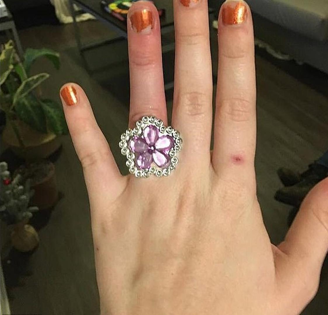 Fotografija prstena u obliku cvijeta s ljubičastim dijamantom objavljena je u grupi ''To je to, posramljujem prsten'', a buduća mladenka pohvalila se kako je riječ o prstenu koji je izrađen po narudžbi samo za nju.
